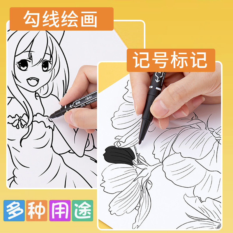 Художественный черный лайнер, детский маркер, кисть, ручка на водной основе, 100 шт