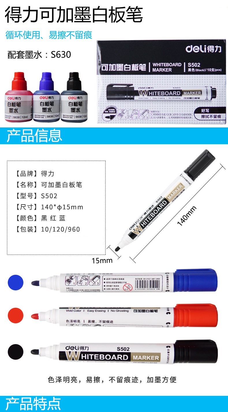 Примечание. Модель S502 Pemoard Pen представляет собой большую емкость чернил, модель S507 является обычной моделью, ручкой белой доски чернил, а модель S506 -это неинкурная ручка доски.Если вам нужно прикрепить чернила, пожалуйста, возьмите блюда по набору чернил. Указаны варианты упаковки.