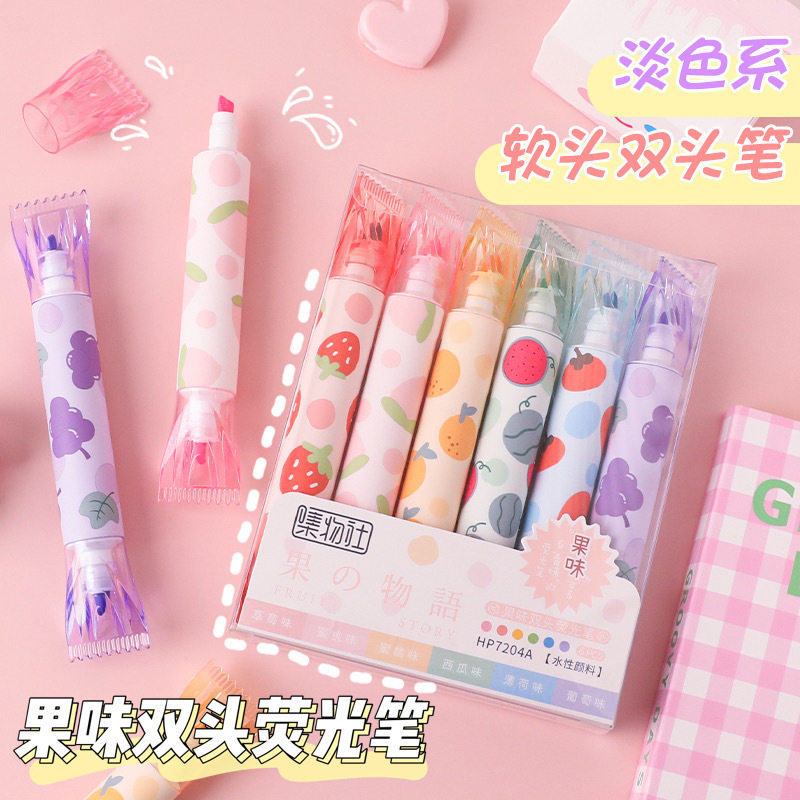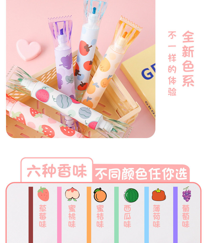 Jiuse Fragrance Candy Double -Hededed Fluorescence Pen Label Color Mark Ученики начальной школы с мемуарами с ключа