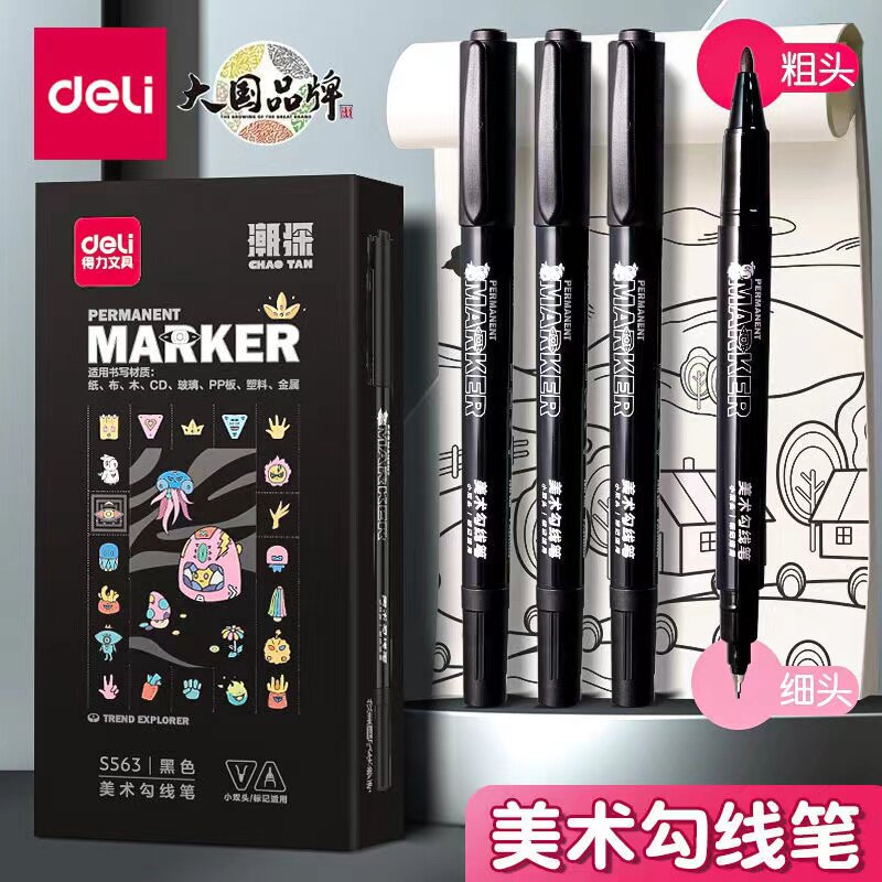 Бесплатная доставка Deli S563 маленький двойной масля-маркер маленькая голова тонкая головка.