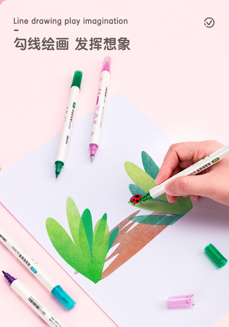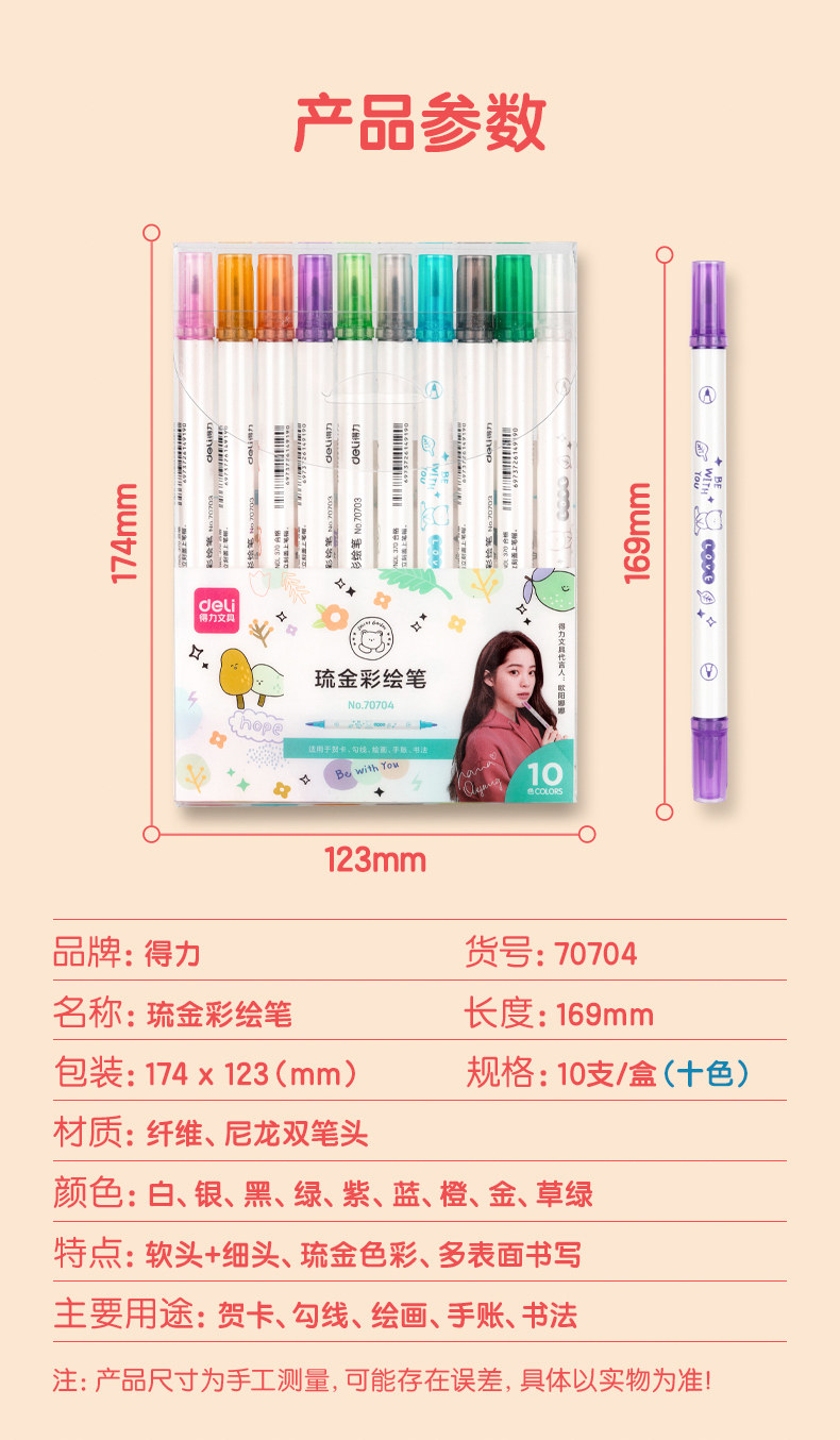 Deli 70703a 70704 Ryukincai Pen Fluorescence Pen Botto Plugs Plugs Perl Line Pen Double Head Show Pen