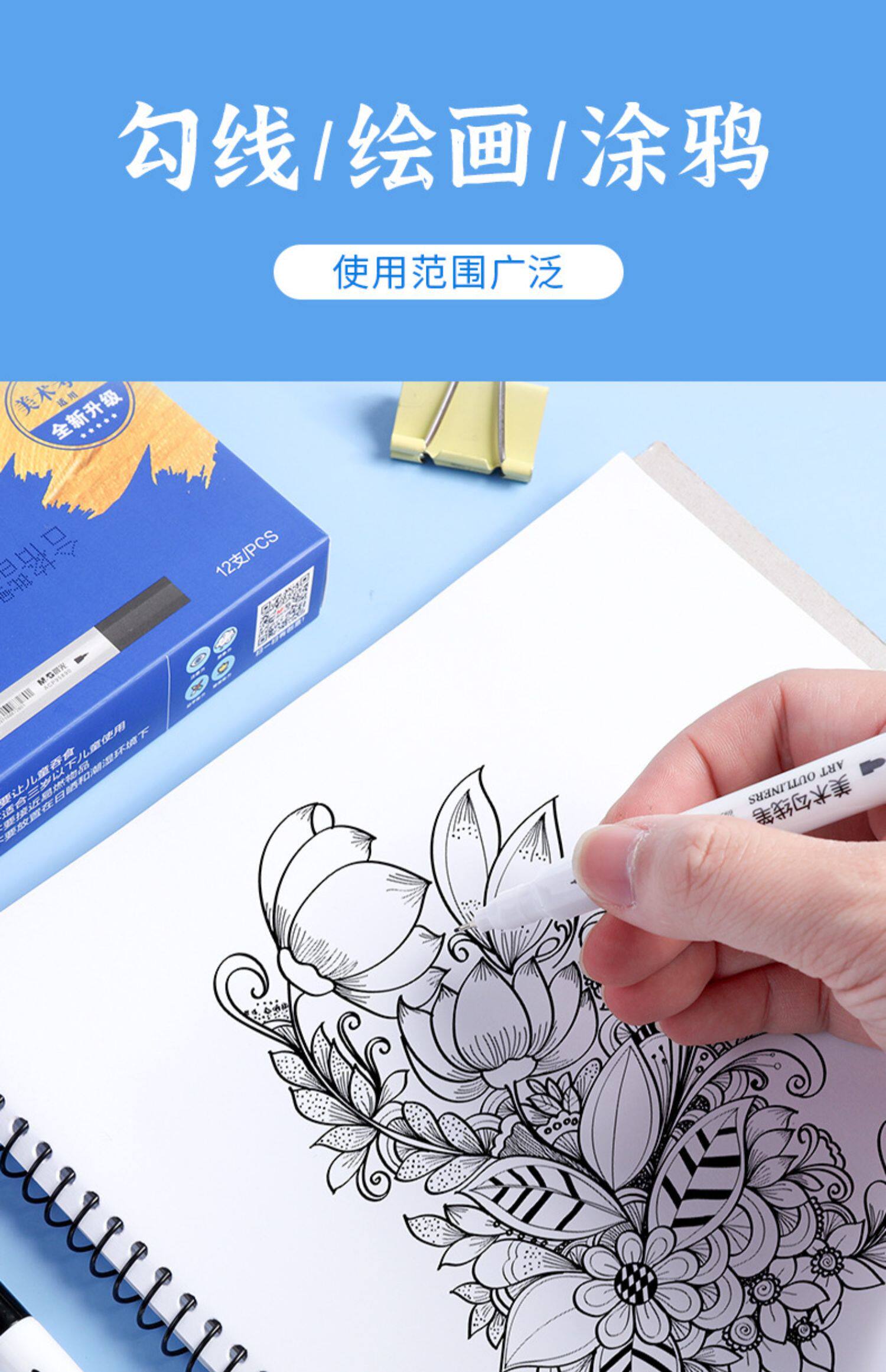 Художественный лайнер для школьников, детская кисть для детского сада, черный быстросохнущий маркер