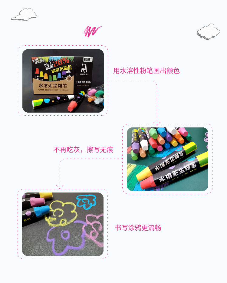 Экологичный водорастворимый мел без пыли для домашнего использования, детская обучающая доска для детского сада