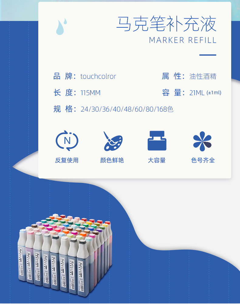 touchcolor Маркер, чернила, комплект, универсальное масло для контуринга, 21 мл, полный комплект, 168 цветов