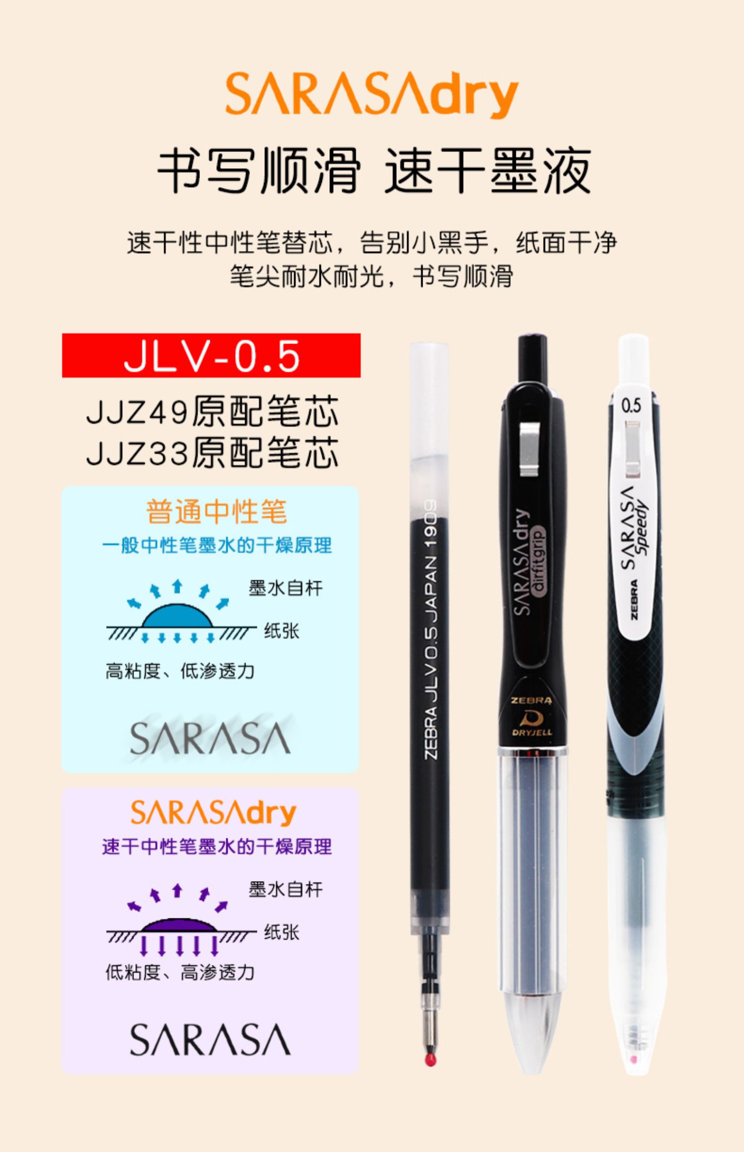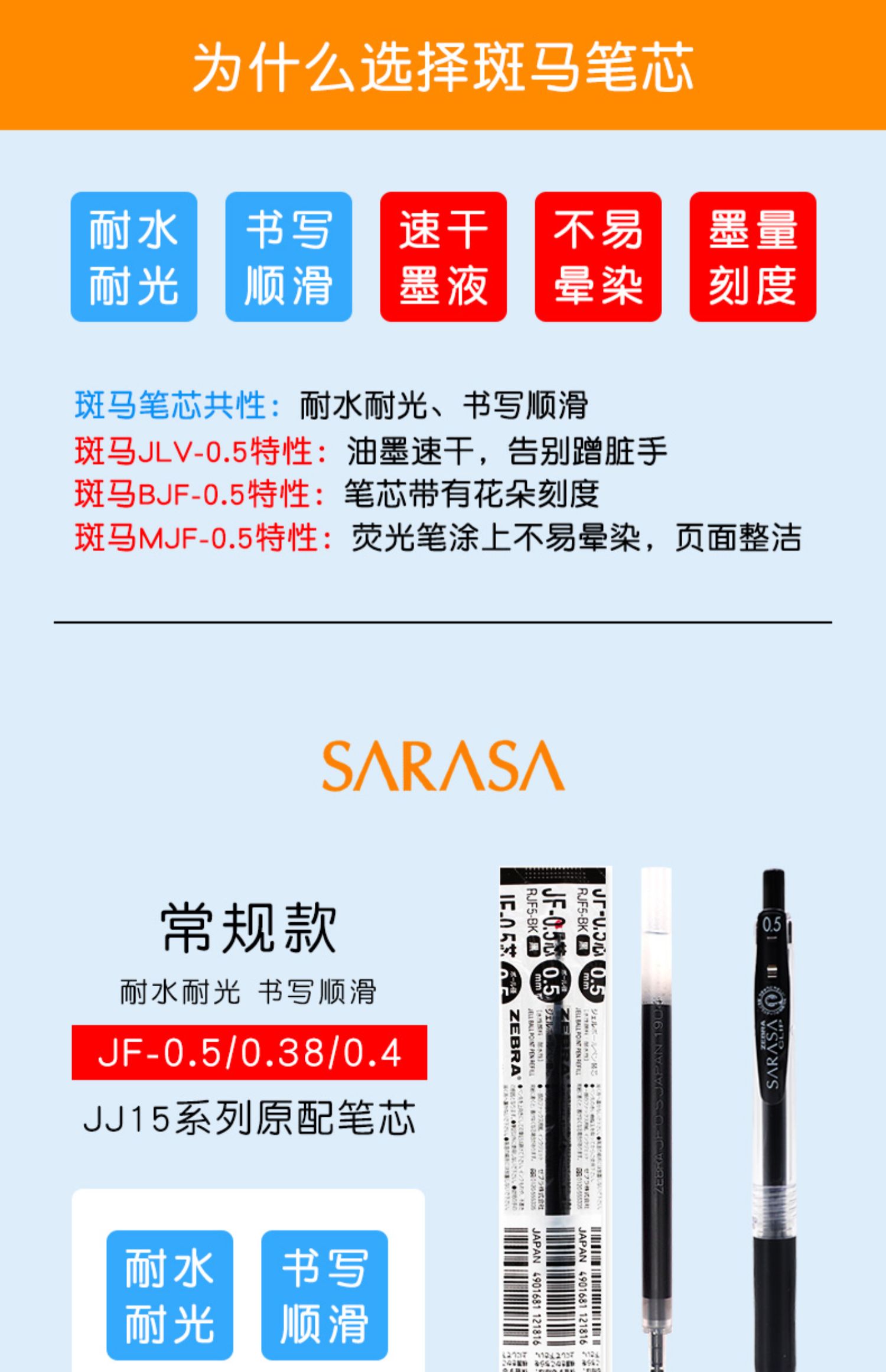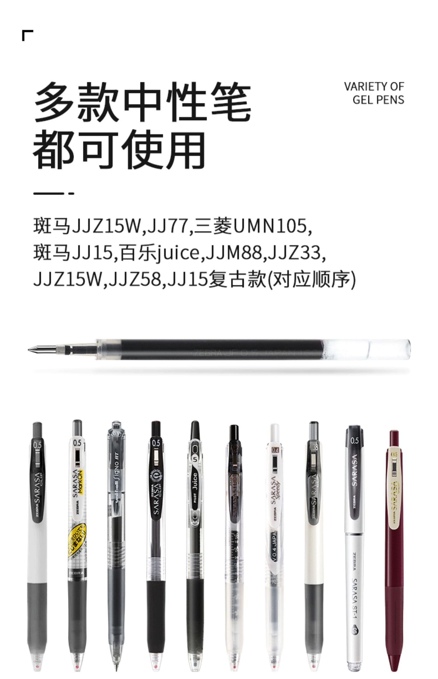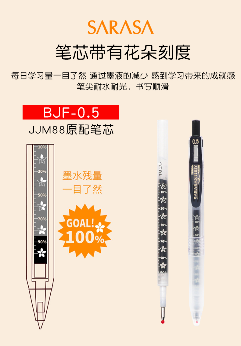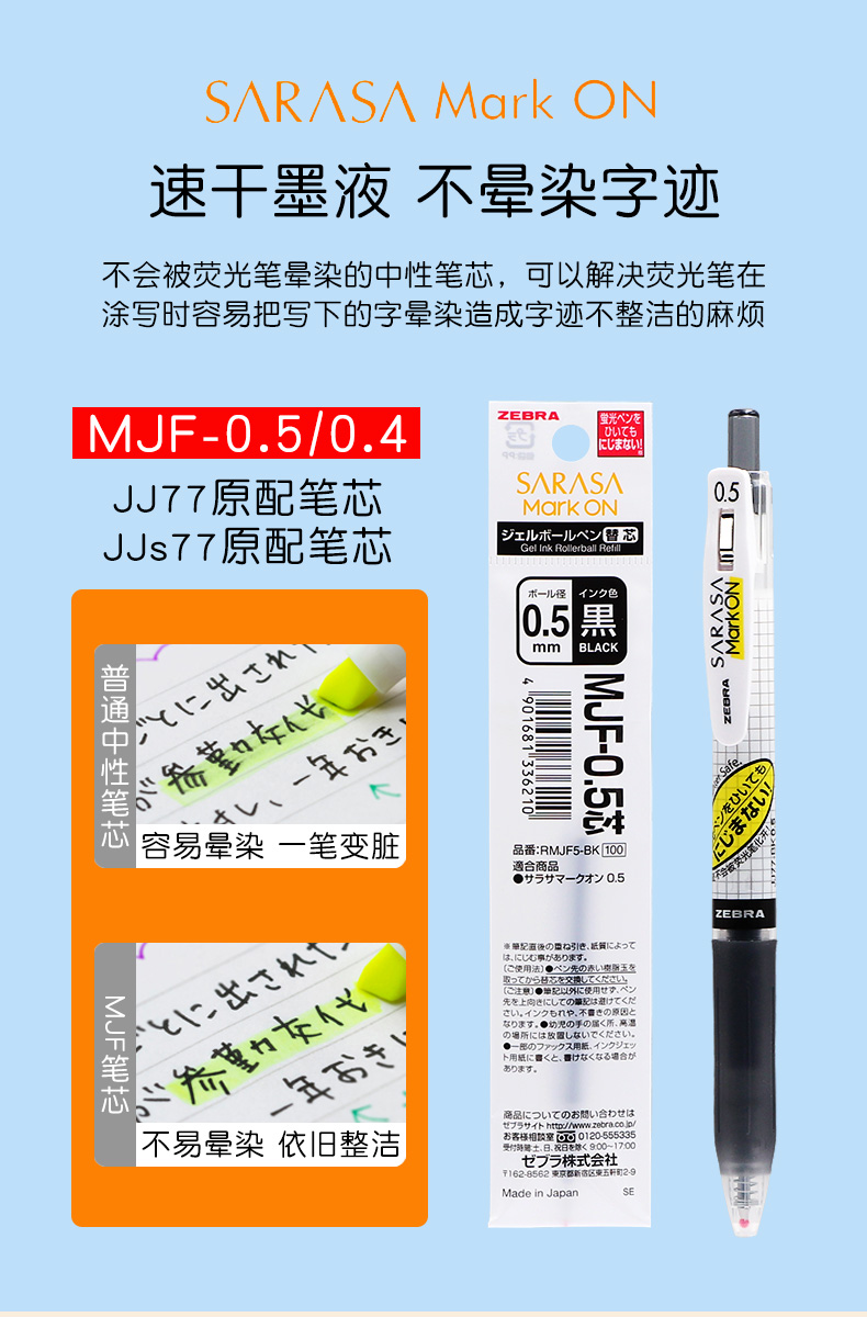 Япония Зебра Зебра Печки Черный 0,5 Нажмите Нейтральную ручку ядра JF-0,5 Retro Color Pens Cherry Blossom JLV быстро сухой ядро JJ77 без слабой красной ручки 0,4