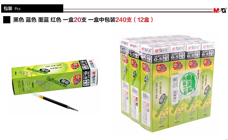 Бесплатная доставка канцелярских товаров chenguang g-5 Нажмите ядро ручки, нажмите динамический нейтральный сердечниц на ручку 0,5 мм синий и черный ядро медицинского рецепта