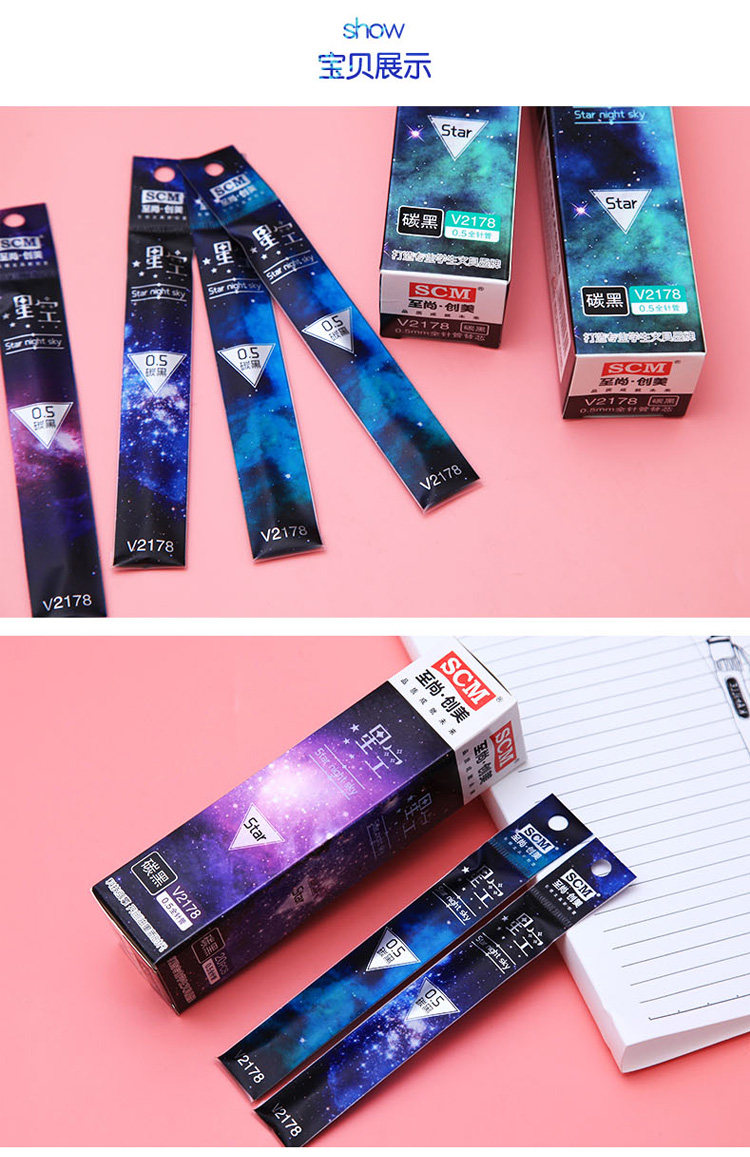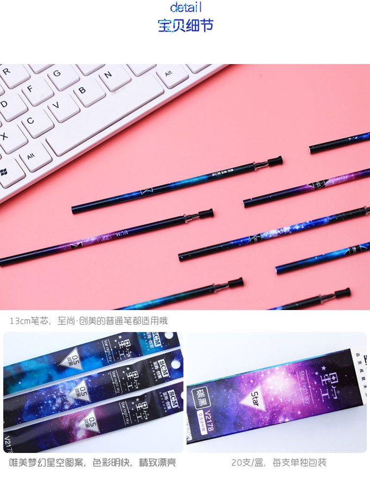 Креативное звездное небо, ручка-роллер, черные цветные карандаши, шариковая ручка для школьников и студентов, 0.5мм