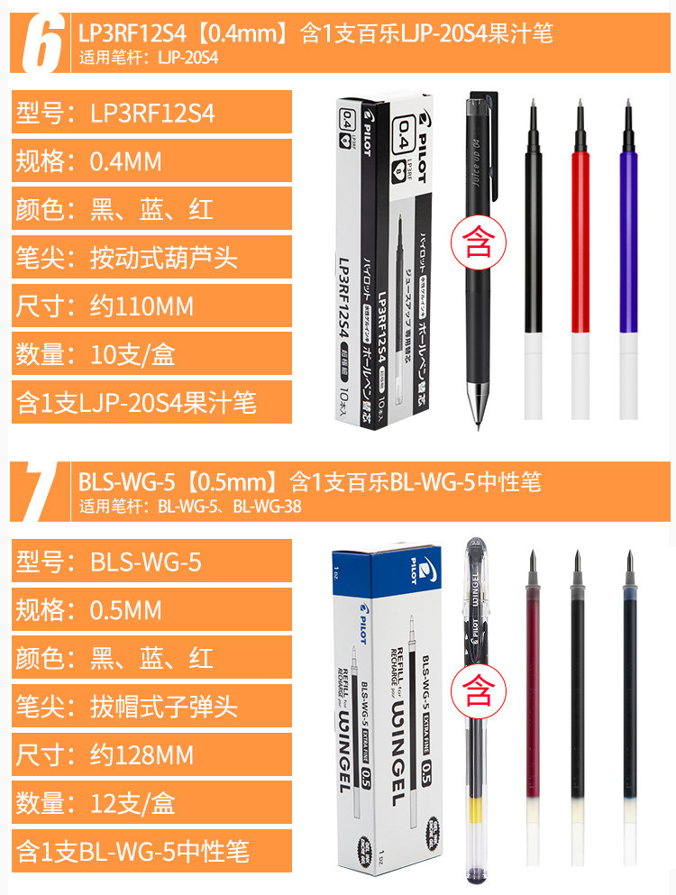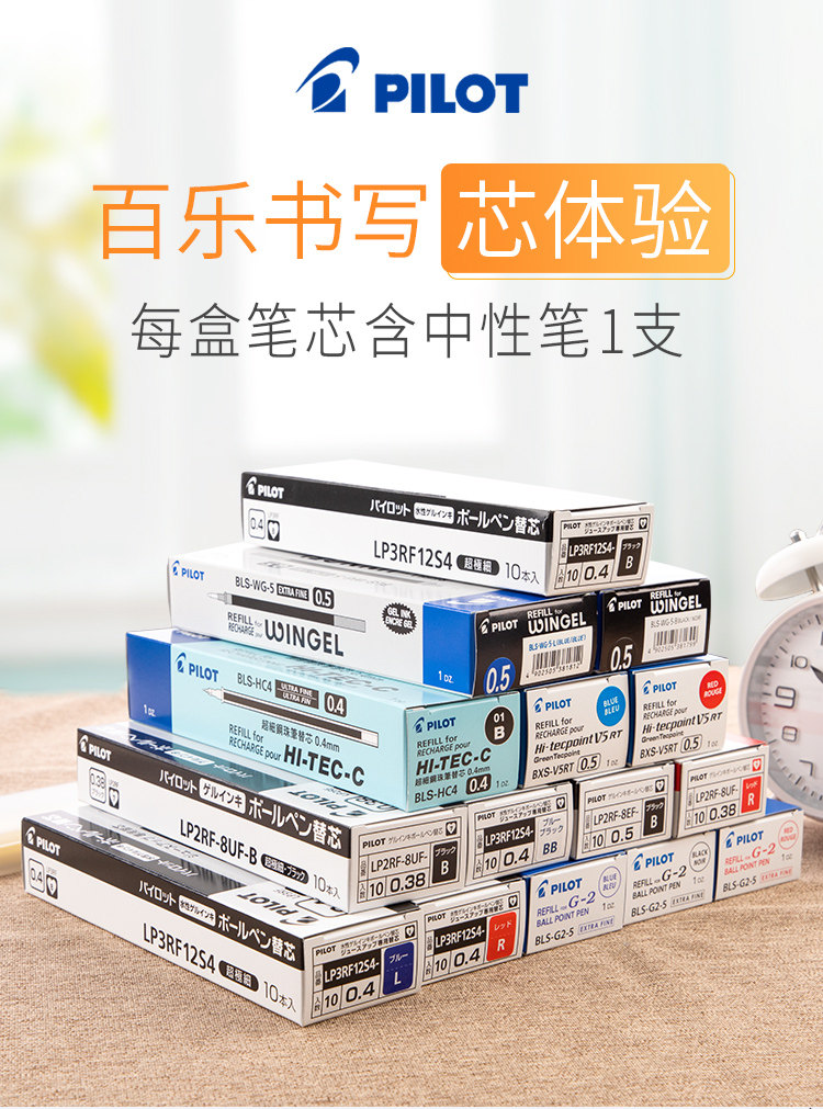Японская пилотная ручка Belle Pen Core 0,5 Черно -нейтральный сердечный ручке 0,38 мм красной ручки сок сок.