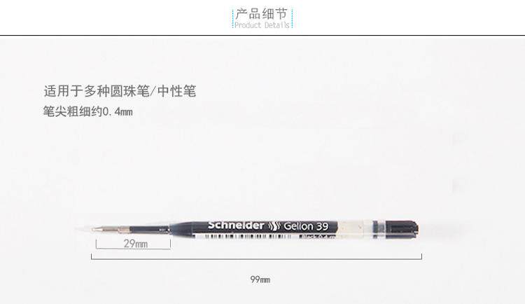 Германия импортировал гелион Шнайдер 39 Нейтральные ручки Знаки G2 Signature Pen Core 0,4 European Standard Pen Core Universal -Dryer 0,4 мм универсальный перо ядра