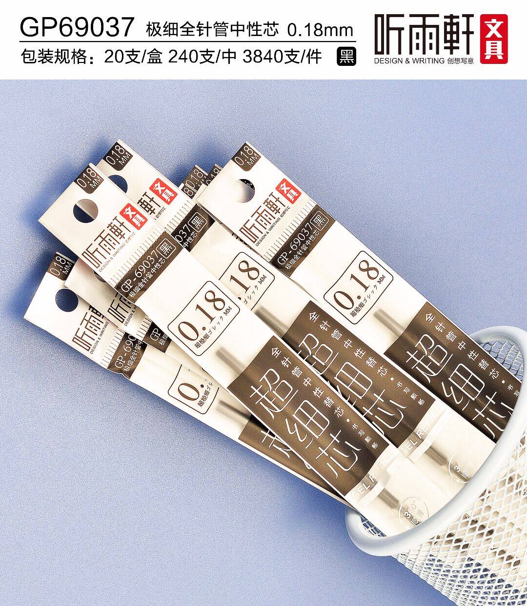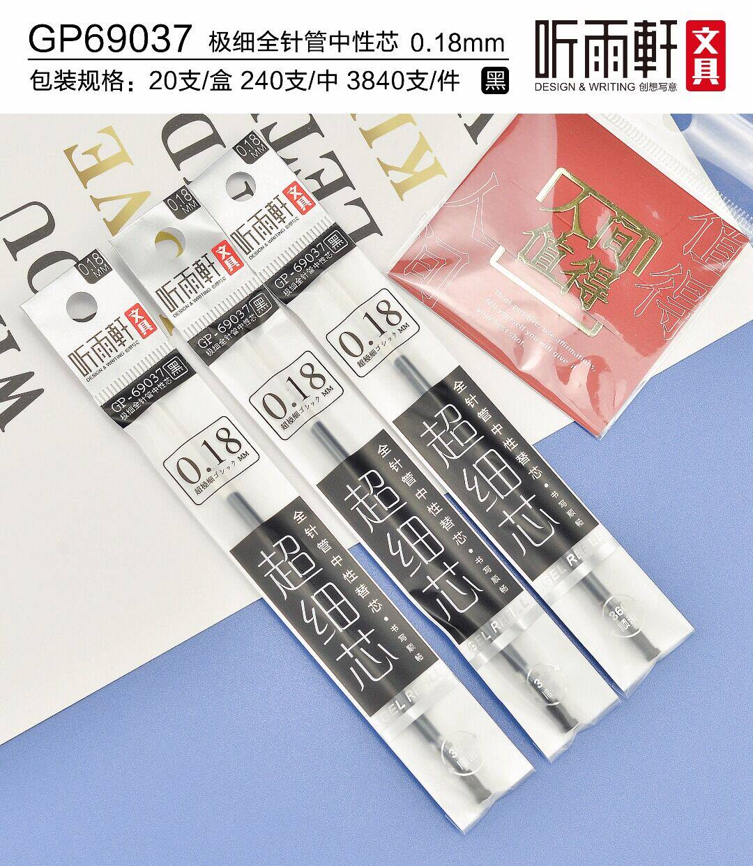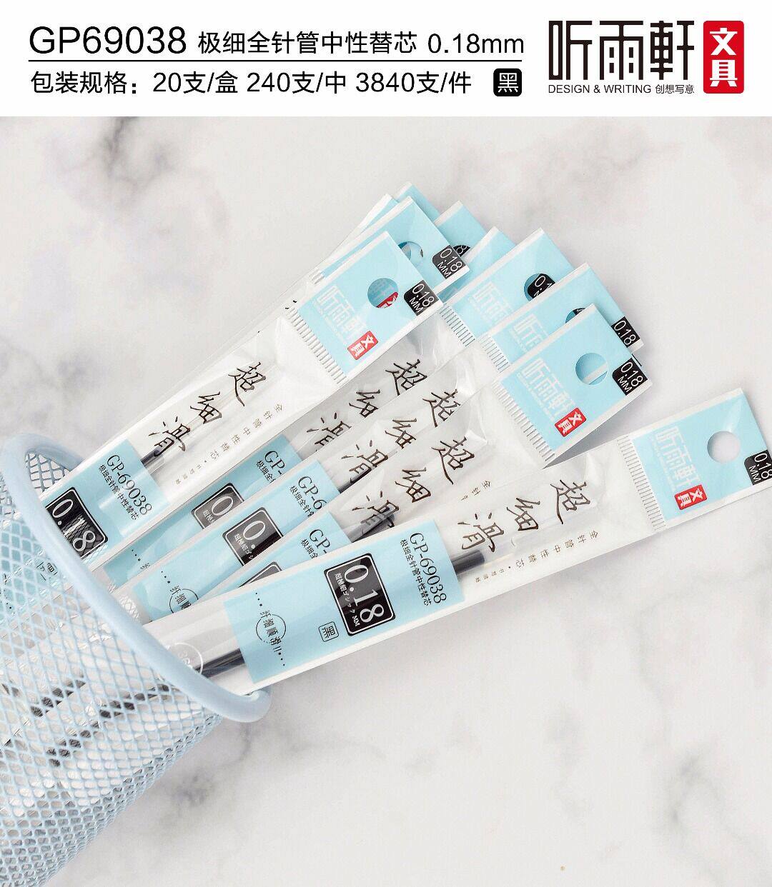 听雨轩 Чрезвычайно тонкий 0,18 мм полная игольчатая трубка нейтральная заправка, тонкое ядро, гладкое, мультфильм, простой стиль и тонкий сердечник GP-69020/69037/69038