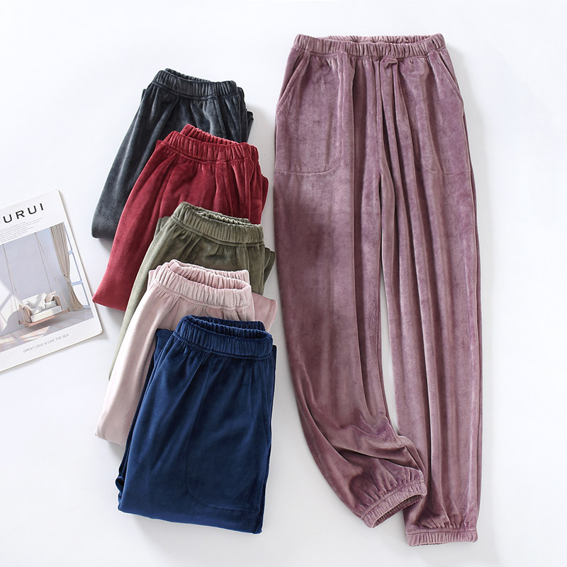 Бархатные демисезонные тонкие фланелевые коралловые штаны подходит для мужчин и женщин, увеличенная толщина