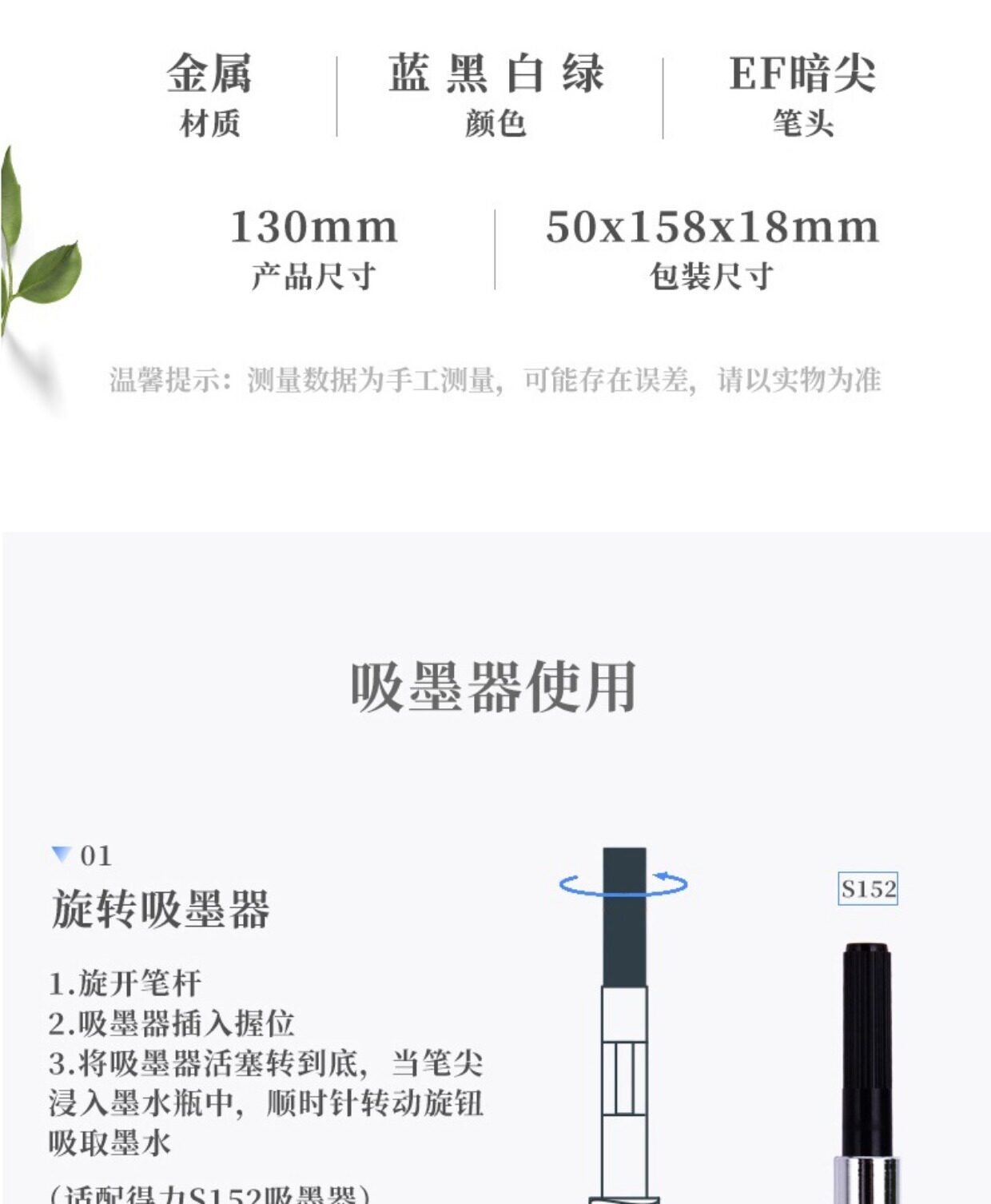 Ручка, металлическая ручка-роллер, каллиграфия, синие чернила, S271
