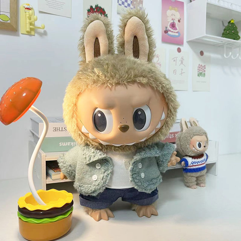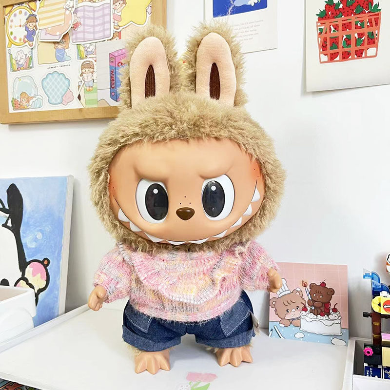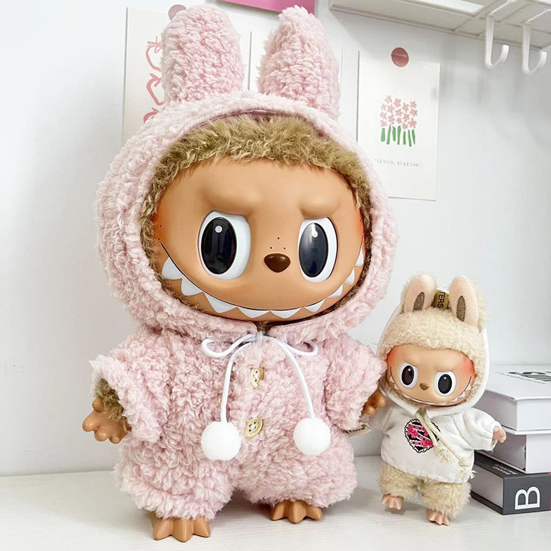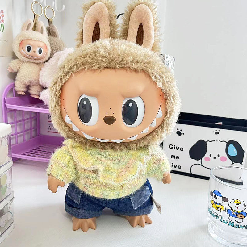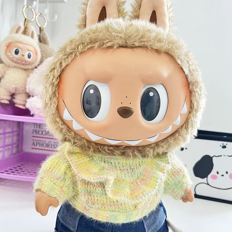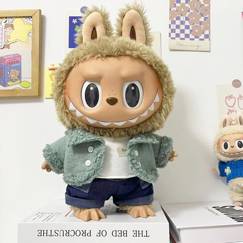 38 см плюшевая кукла Лабубу, одежда в зеленом цвете, костюм из шерсти ягненка, повседневная одежда для куклы Лабубу