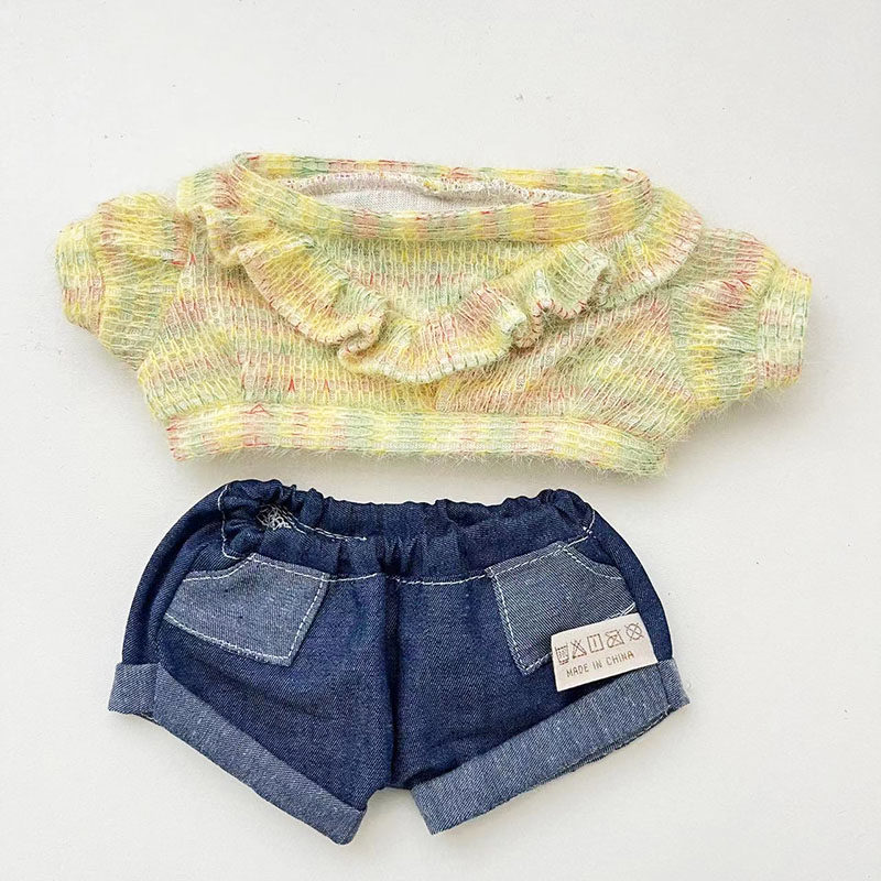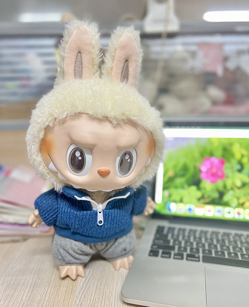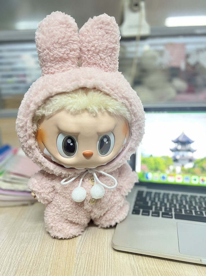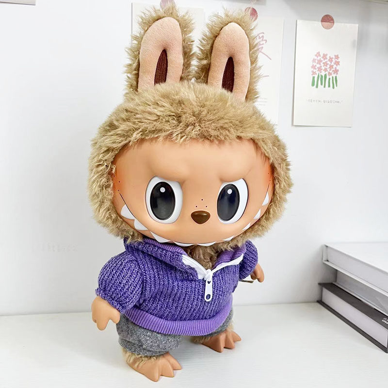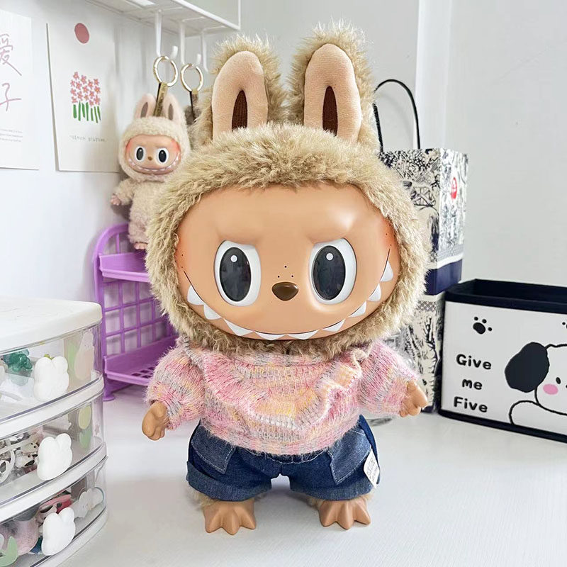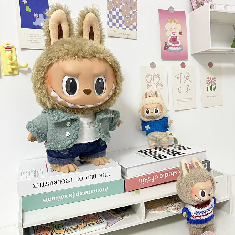 38 см плюшевая кукла Лабубу, одежда в зеленом цвете, костюм из шерсти ягненка, повседневная одежда для куклы Лабубу