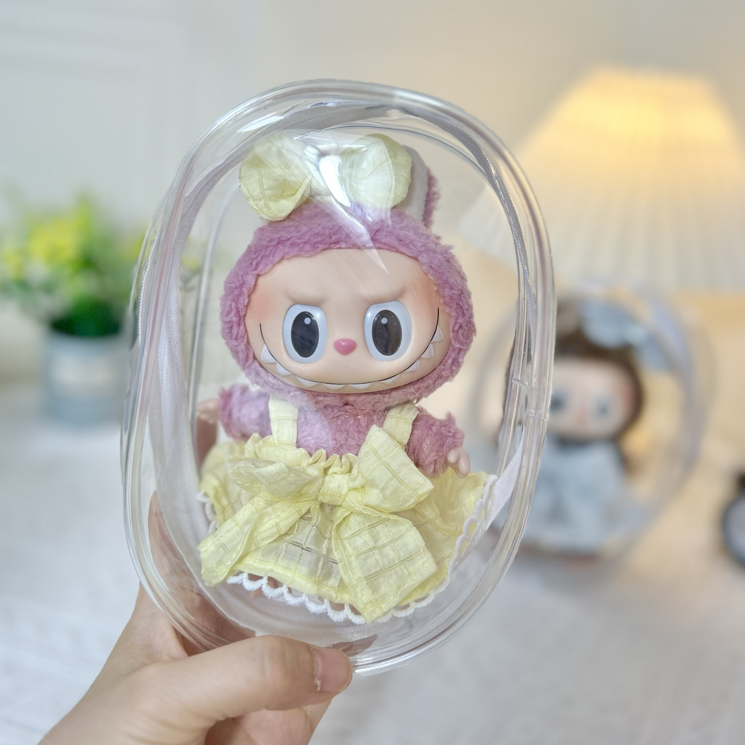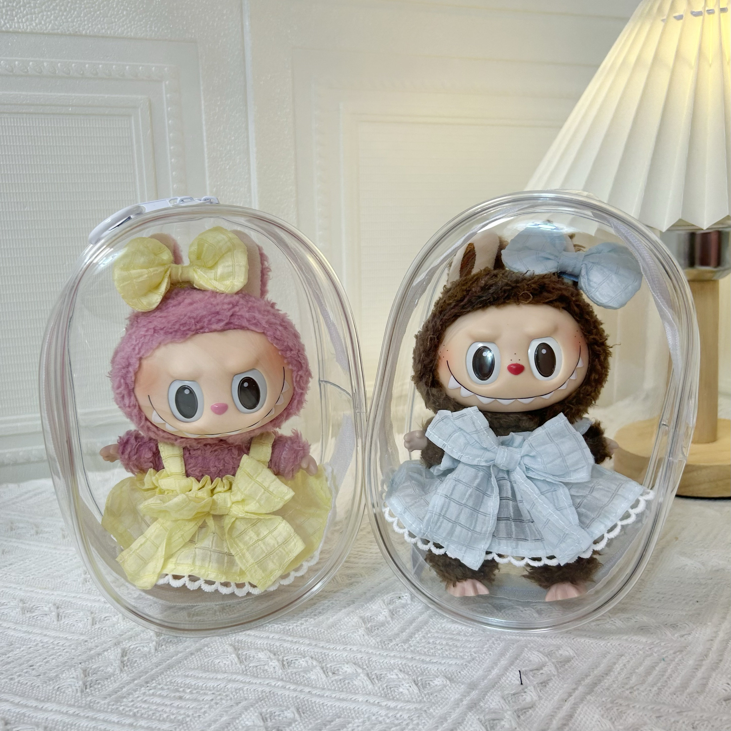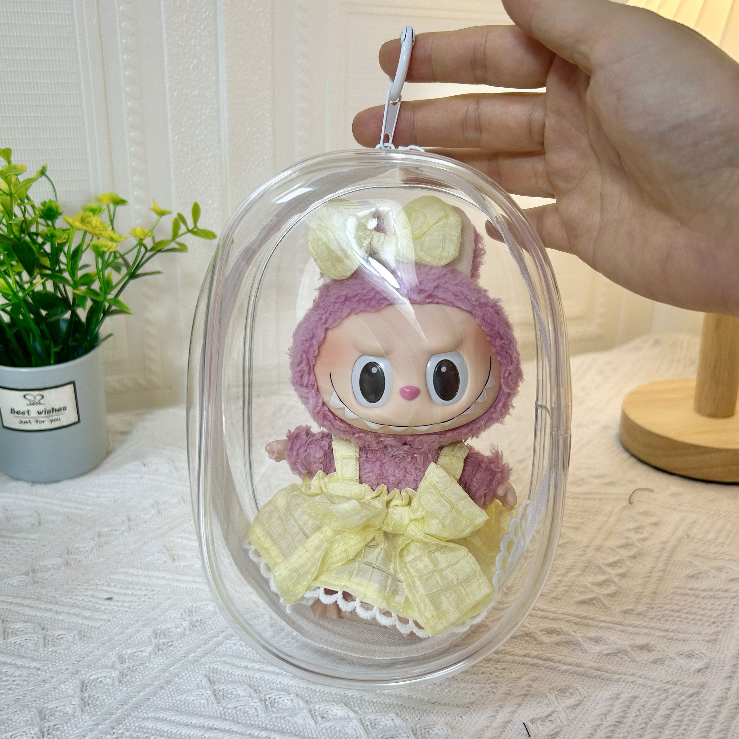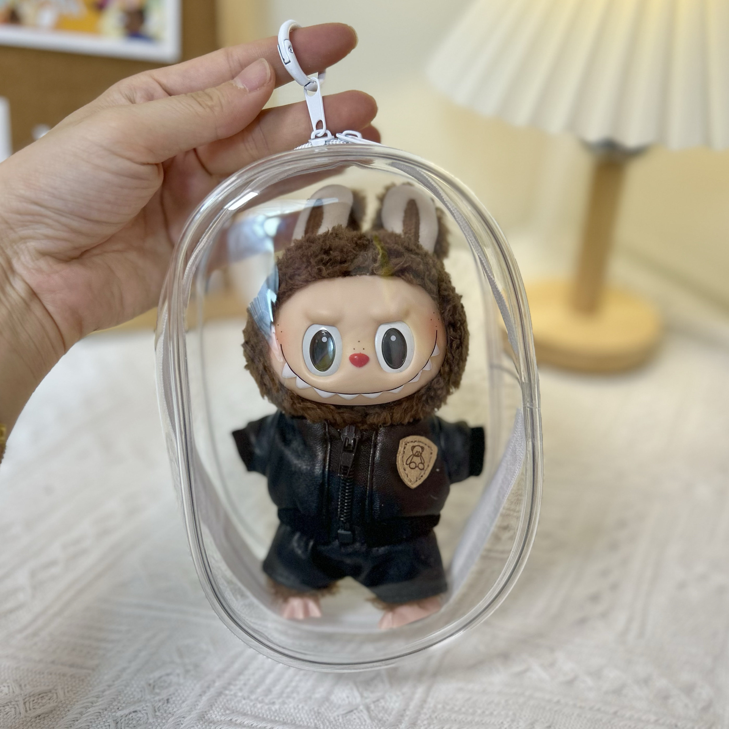 Просто одежда] 17 см подвесной лаб для тканевой куклы высокая, прозрачная пылепроницаемая внешняя сумка Labubu Storage