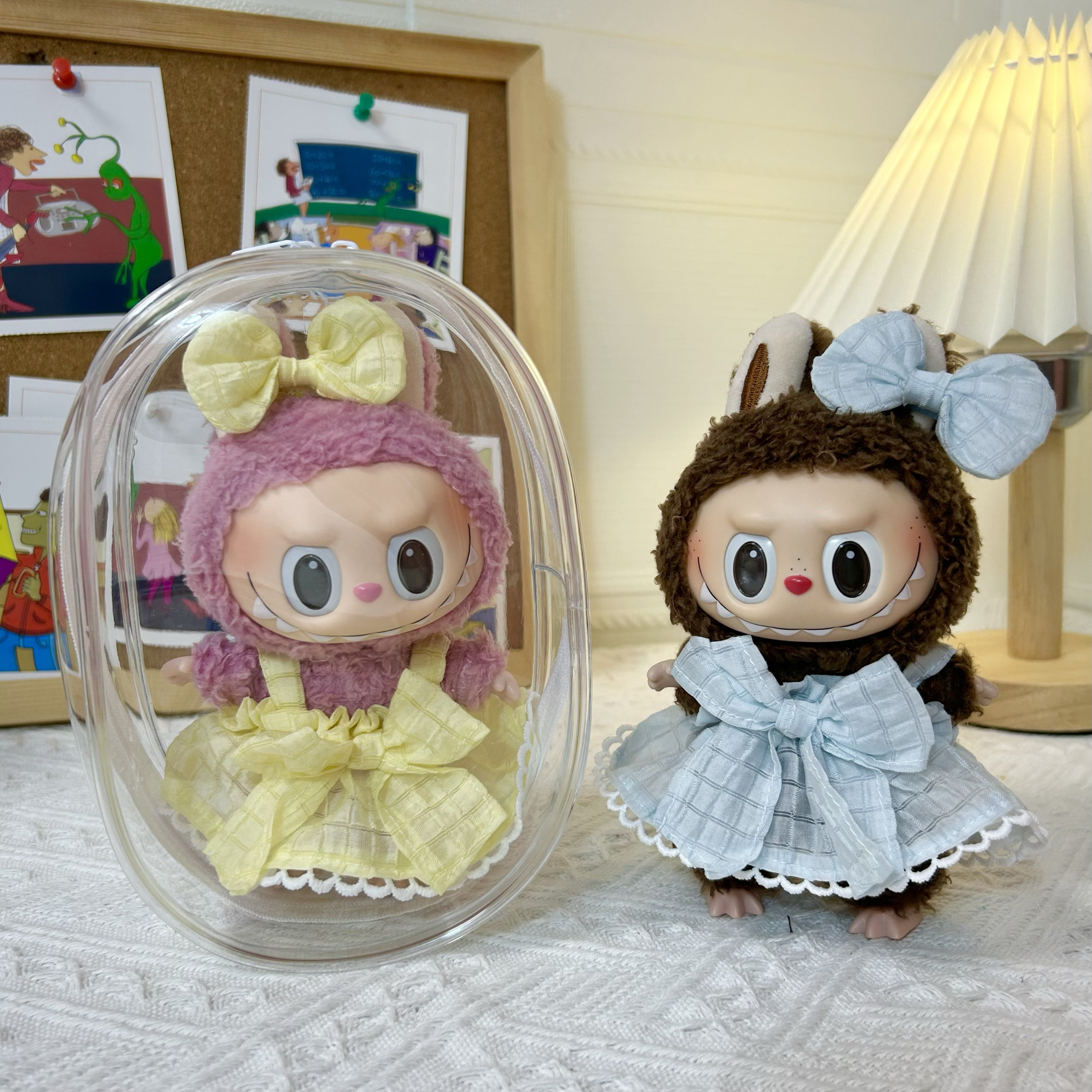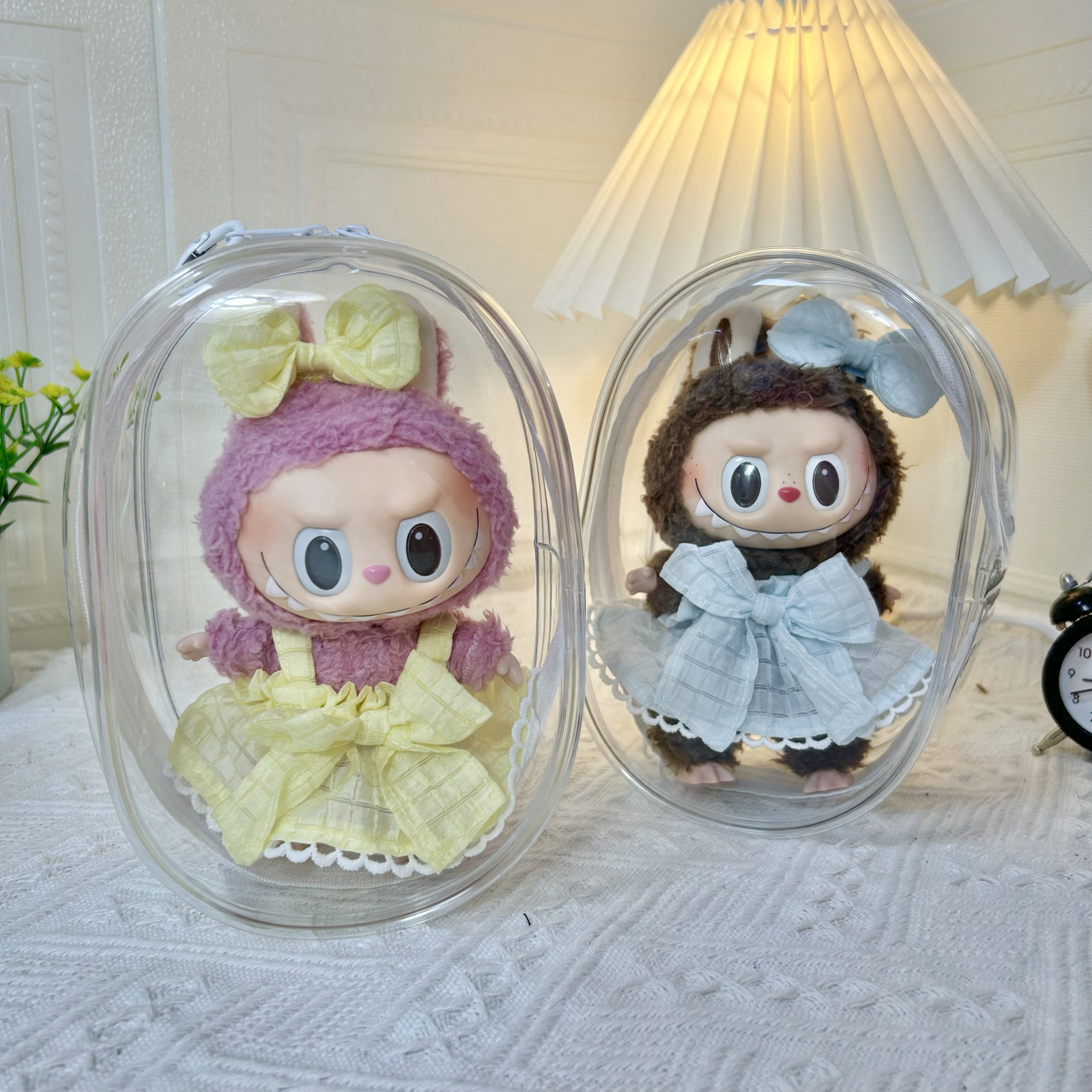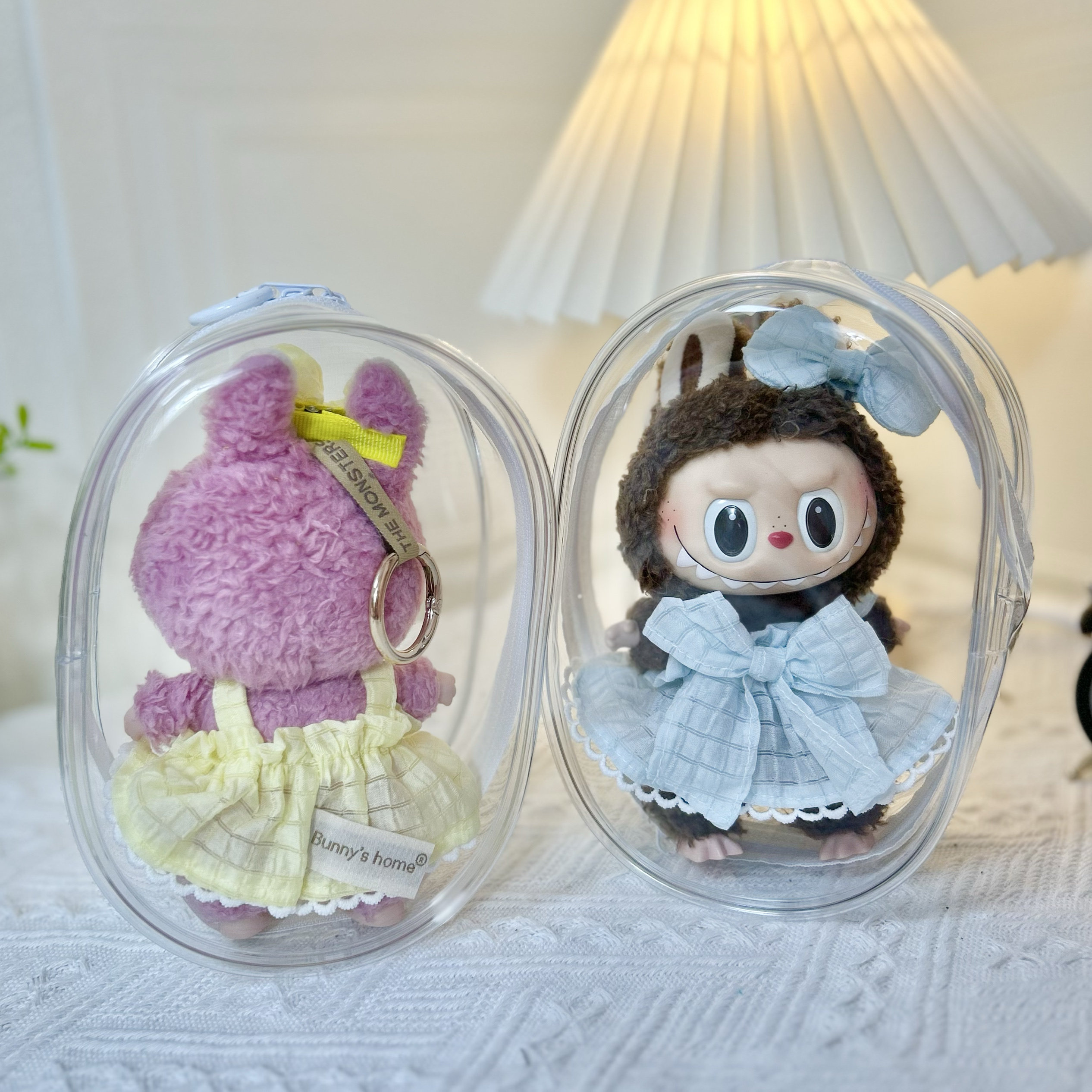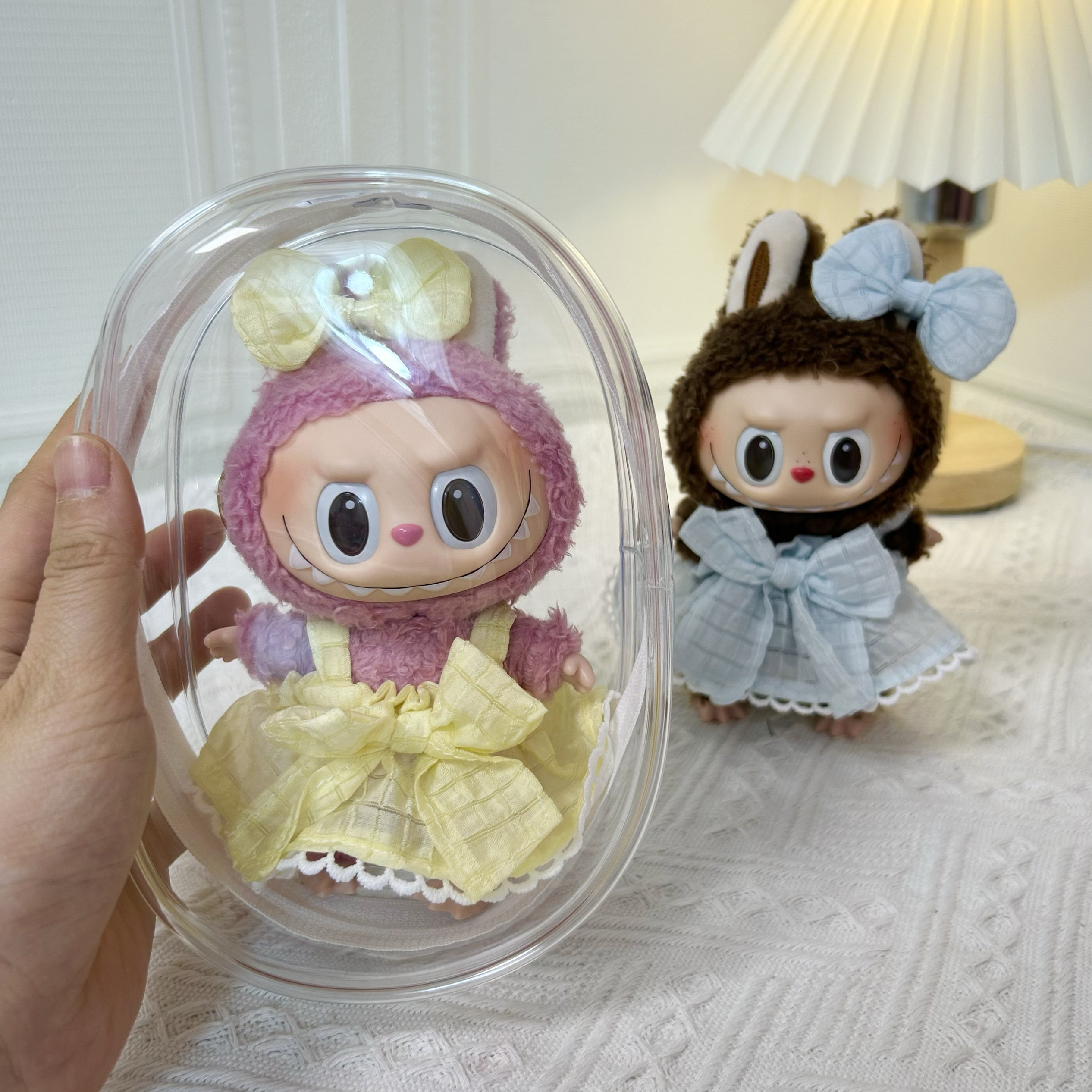 Просто одежда] 17 см подвесной лаб для тканевой куклы высокая, прозрачная пылепроницаемая внешняя сумка Labubu Storage