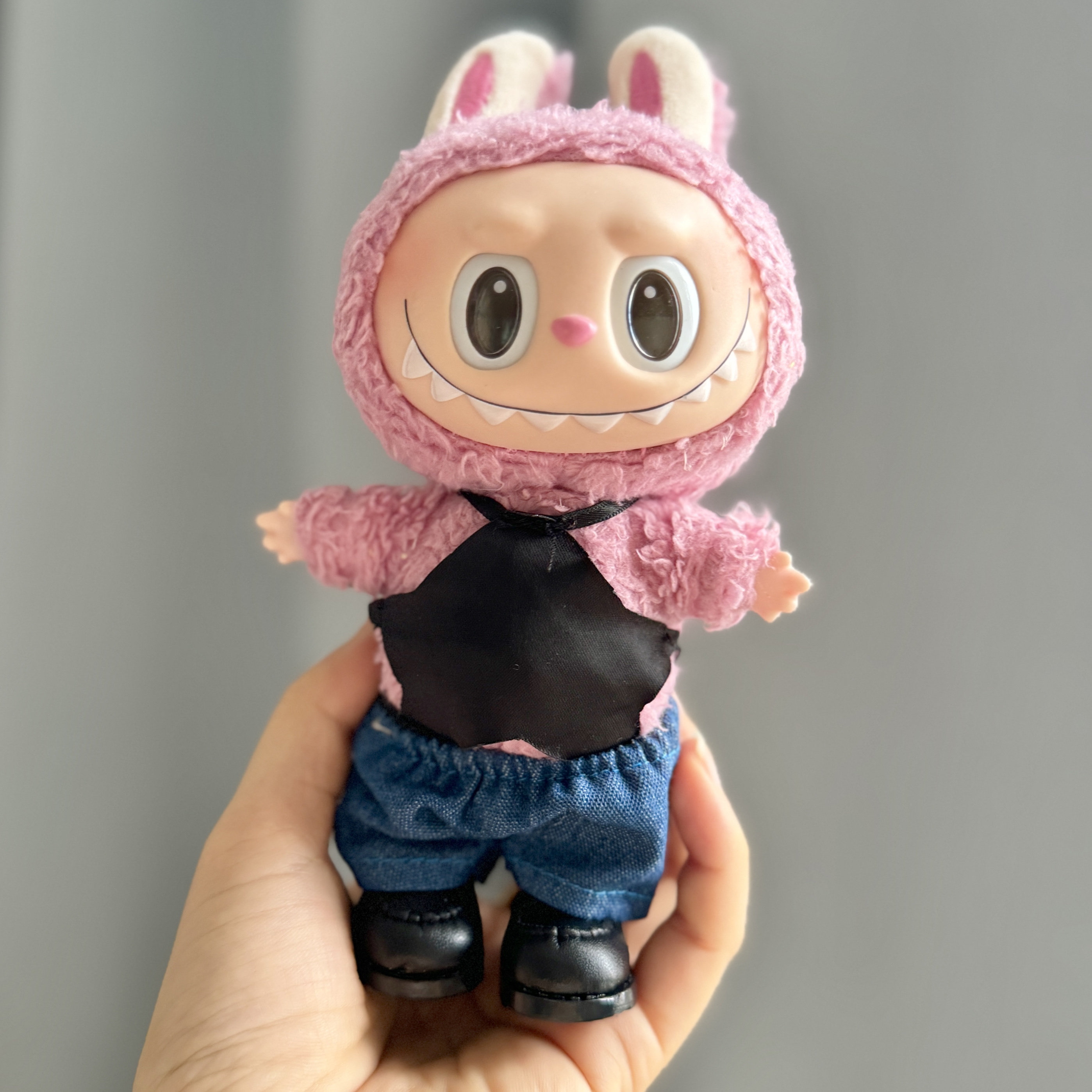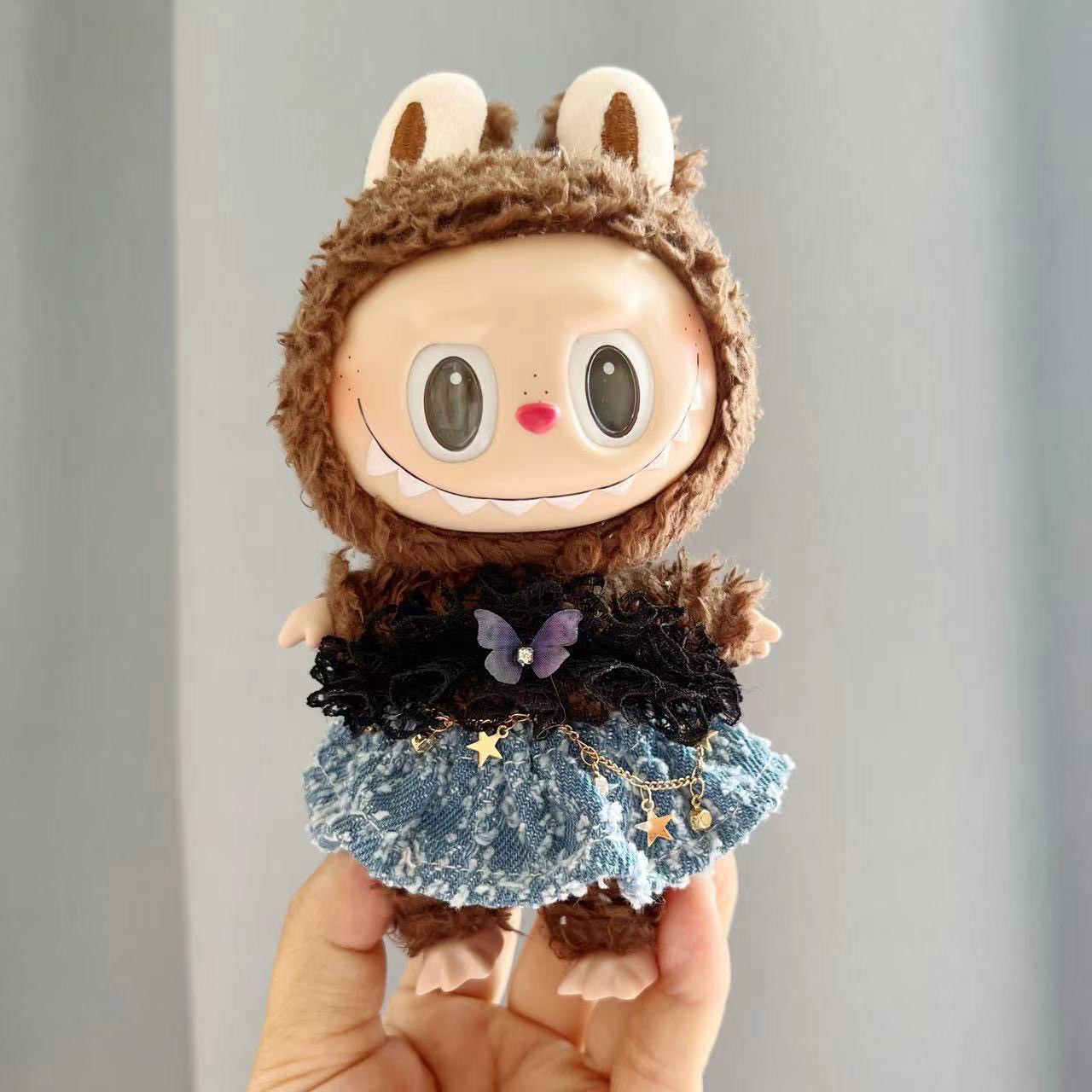 Только одежда] 17 см замена ткани лабубу кулон кукла лабубу брелок детская одежда черное перо поцелуй костюм милый