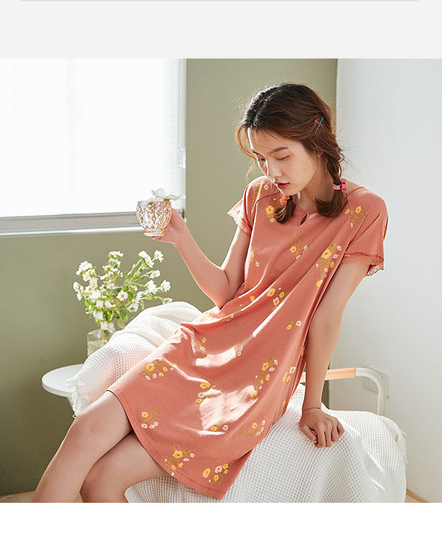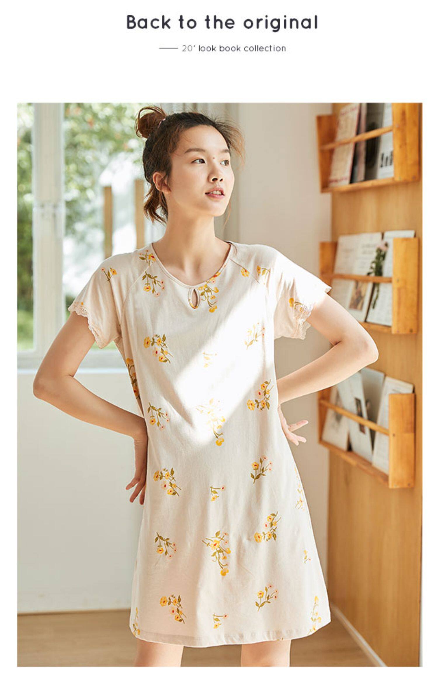 Хлопковая пижама, платье, тонкая юбка, эффект подтяжки, цветочный принт, большой размер, подходит для полных девушек