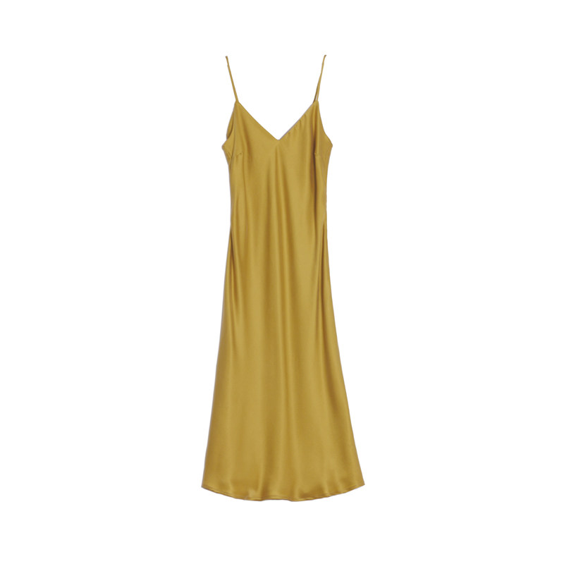 Шелковое платье-комбинация, платье, базовая летняя оригинальная дизайнерская юбка, французский стиль, V-образный вырез, облегающий крой