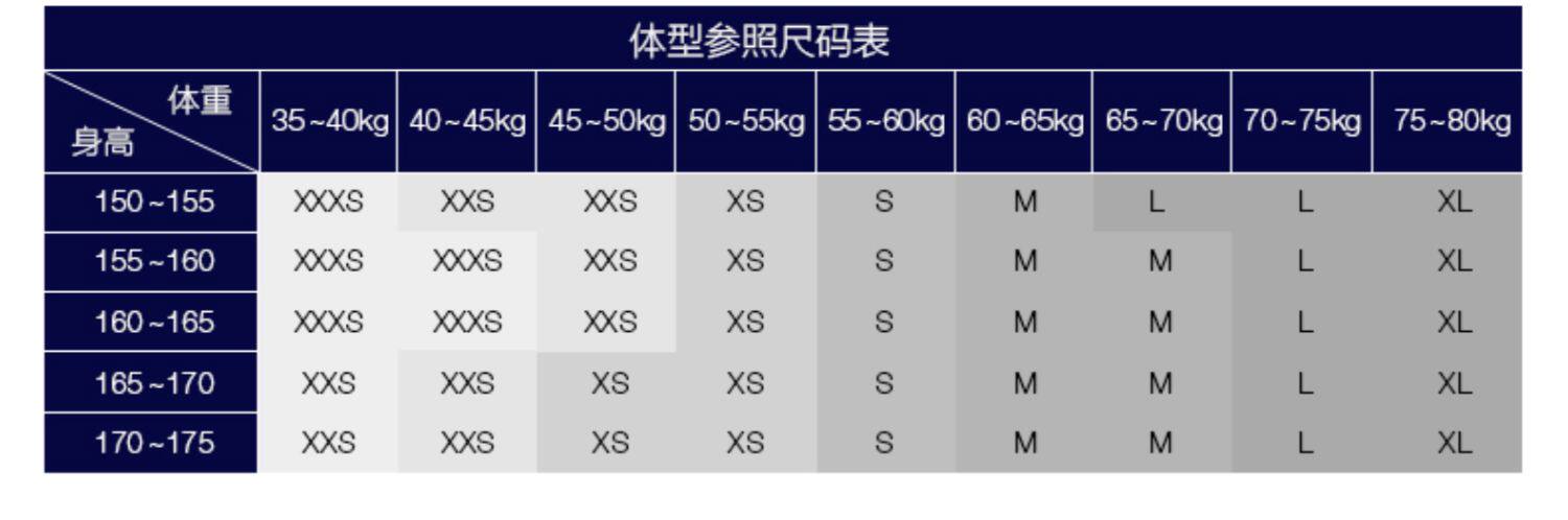 | Размер: | 160/80A(XXS), 165/84A(XS), 165/88A(S), 170/96A(M), 170/100A(L) |