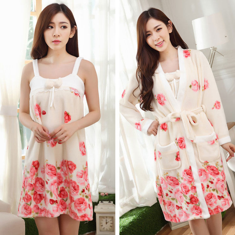Зимняя сексуальная пижама, фланелевая юбка, лонгслив, удерживающий тепло банный халат, эффект подтяжки, 2 предмета