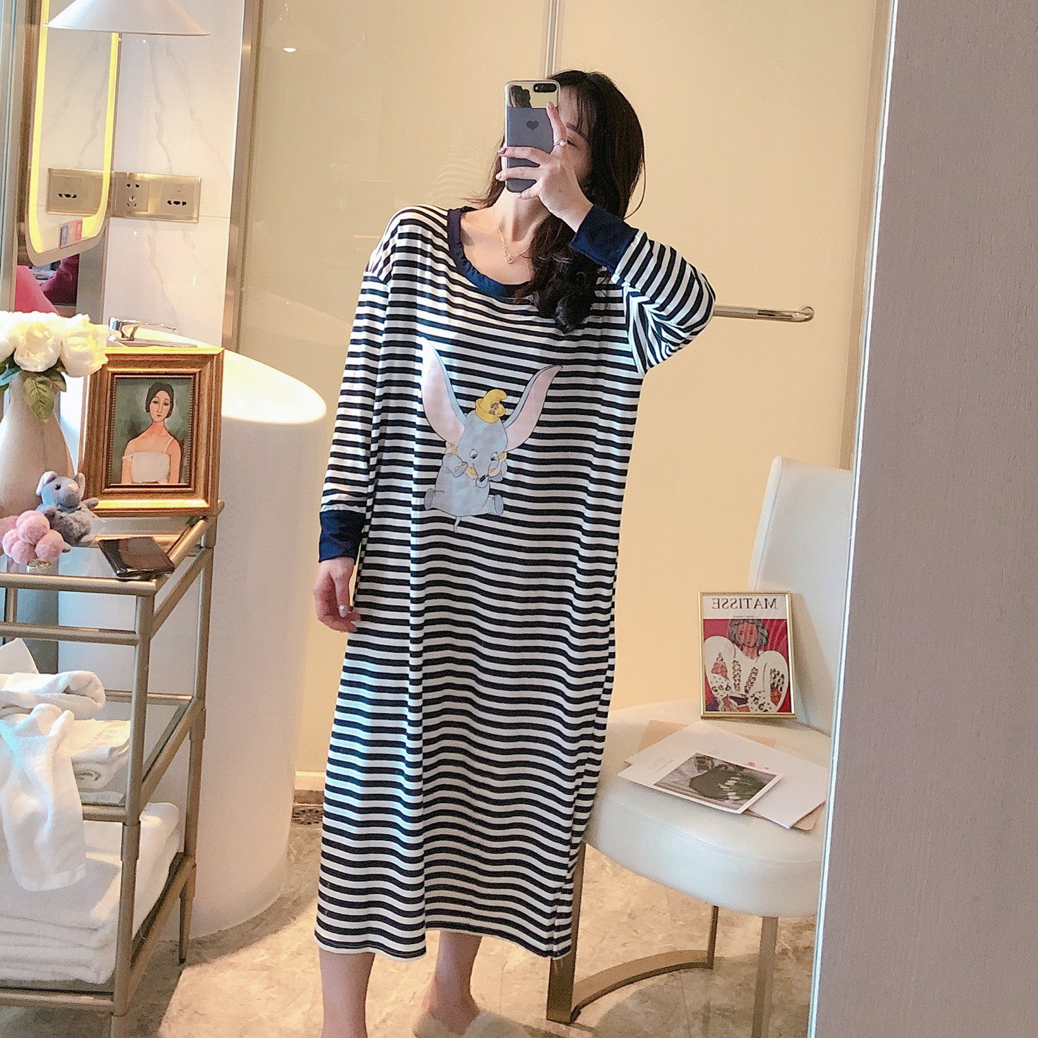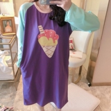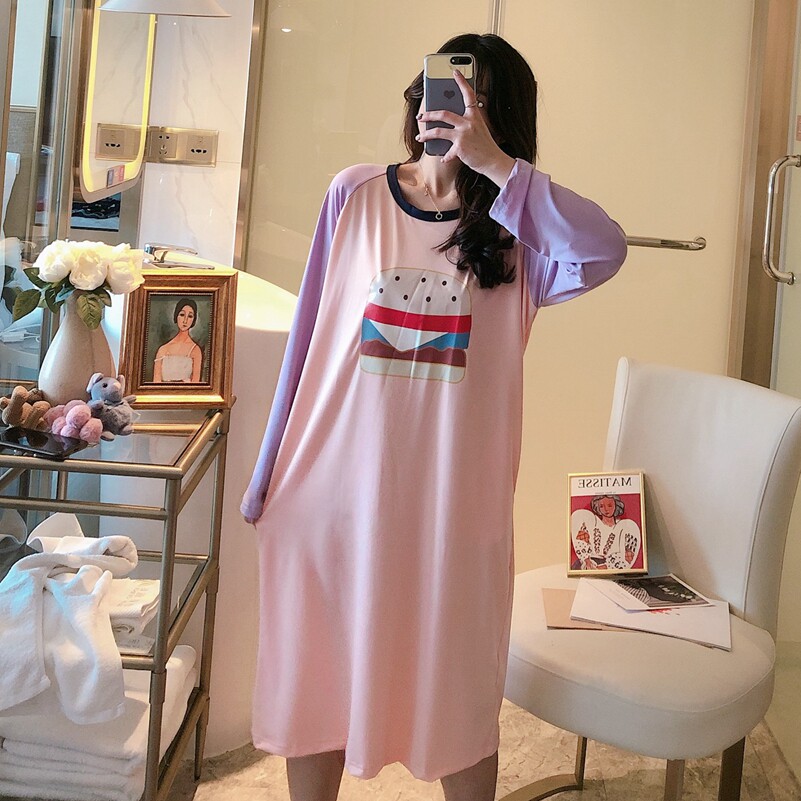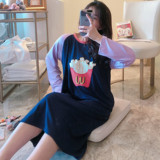 Пижама, тонкая осенняя юбка, лонгслив, платье, в корейском стиле, большой размер