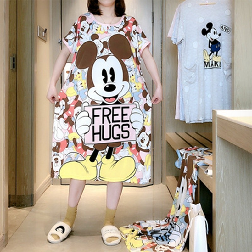 Летняя пижама, хлопковая милая длинная юбка, короткий рукав, в корейском стиле, большой размер