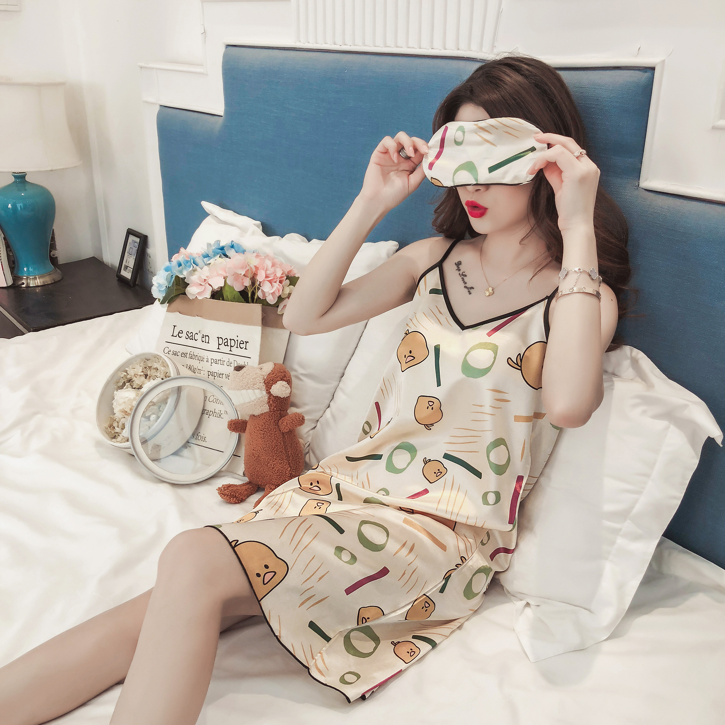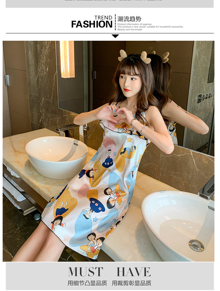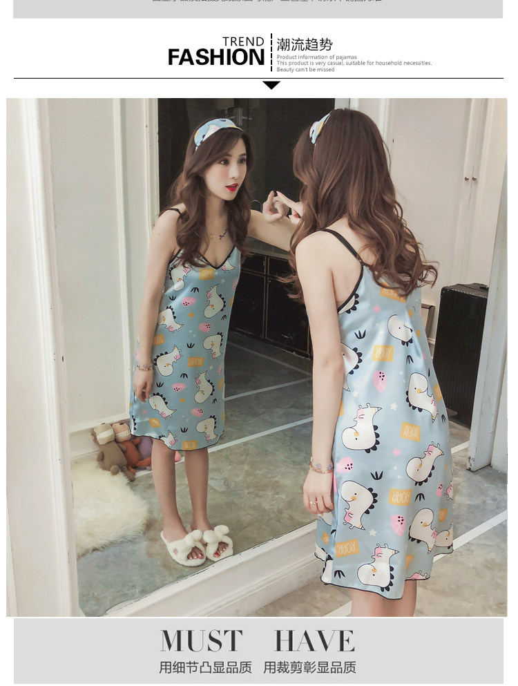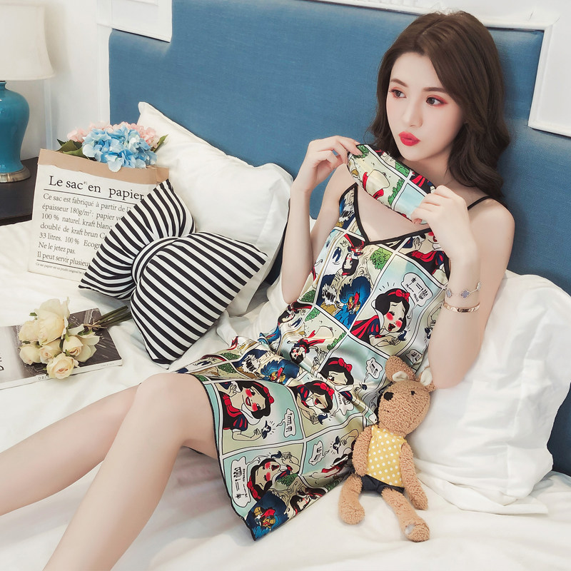 Мультяшная летняя сексуальная пижама, милая шелковая юбка, эффект подтяжки, в корейском стиле