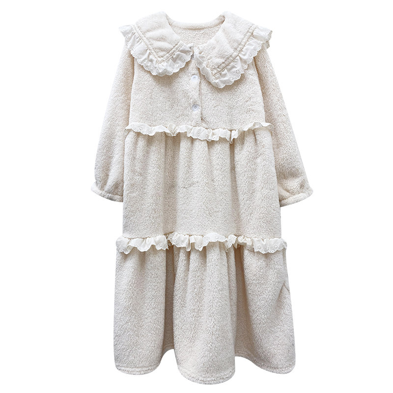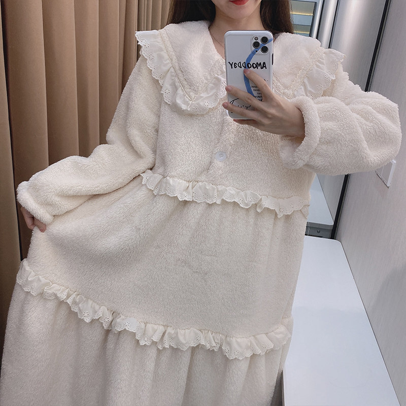 Пижама, зимняя коралловая бархатная утепленная длинная белая милая юбка, средней длины