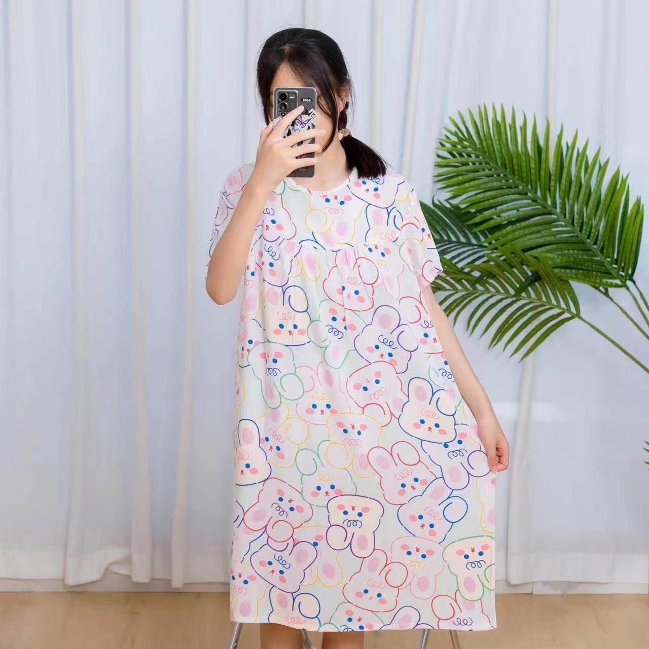 Летняя милая тонкая пижама, короткий рукав, свободный крой