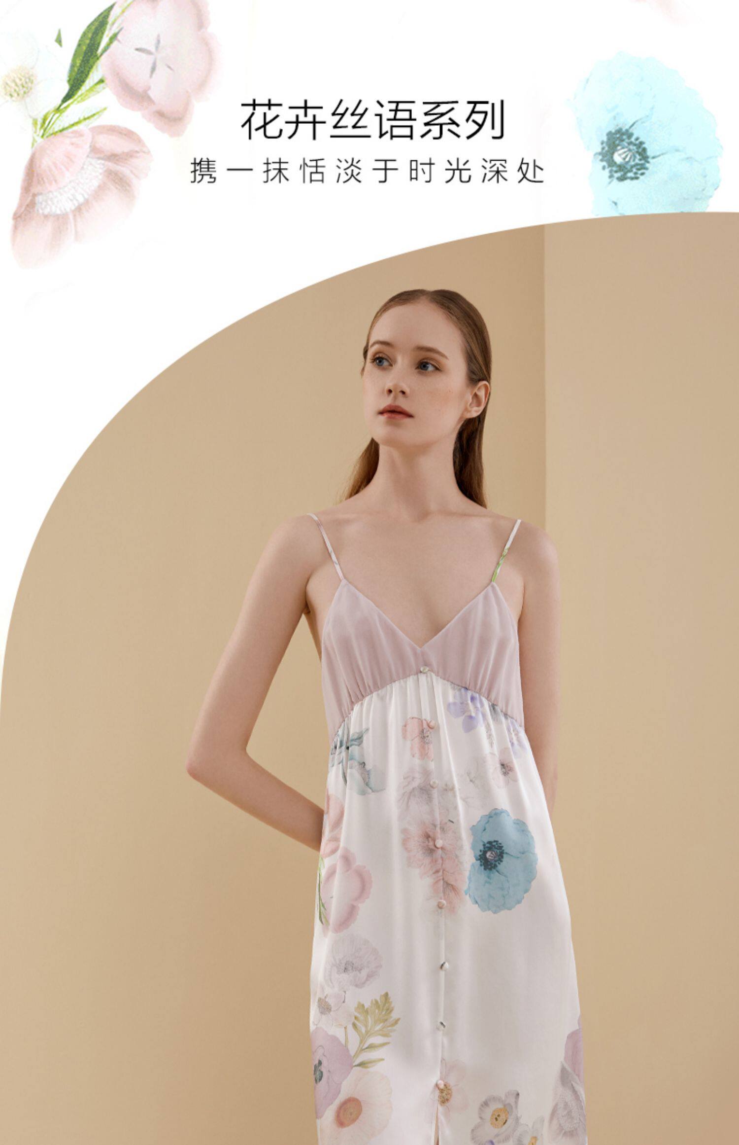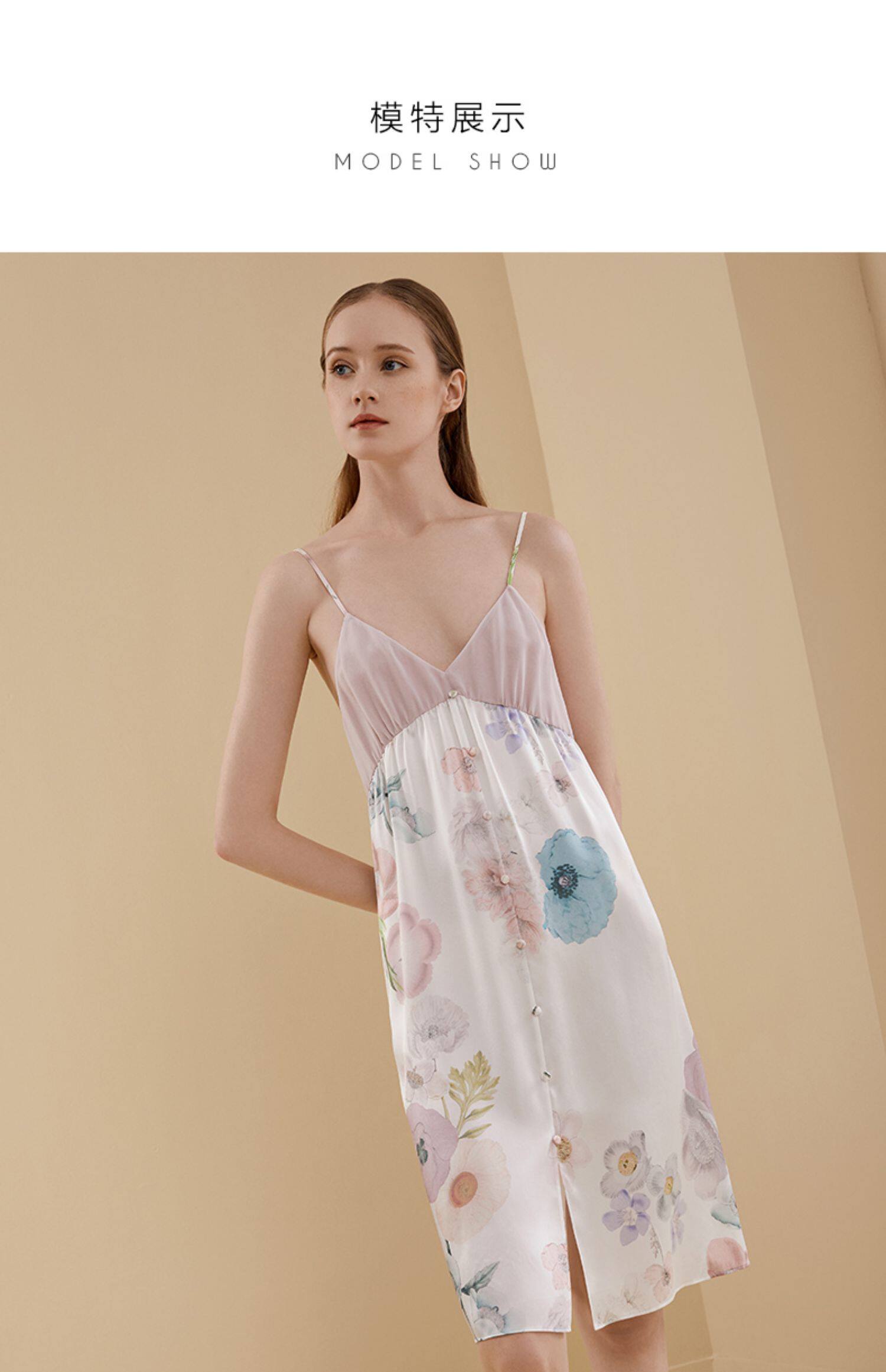 金三塔 Шелковая пижама, сексуальная тонкая юбка, V-образный вырез, в цветочек