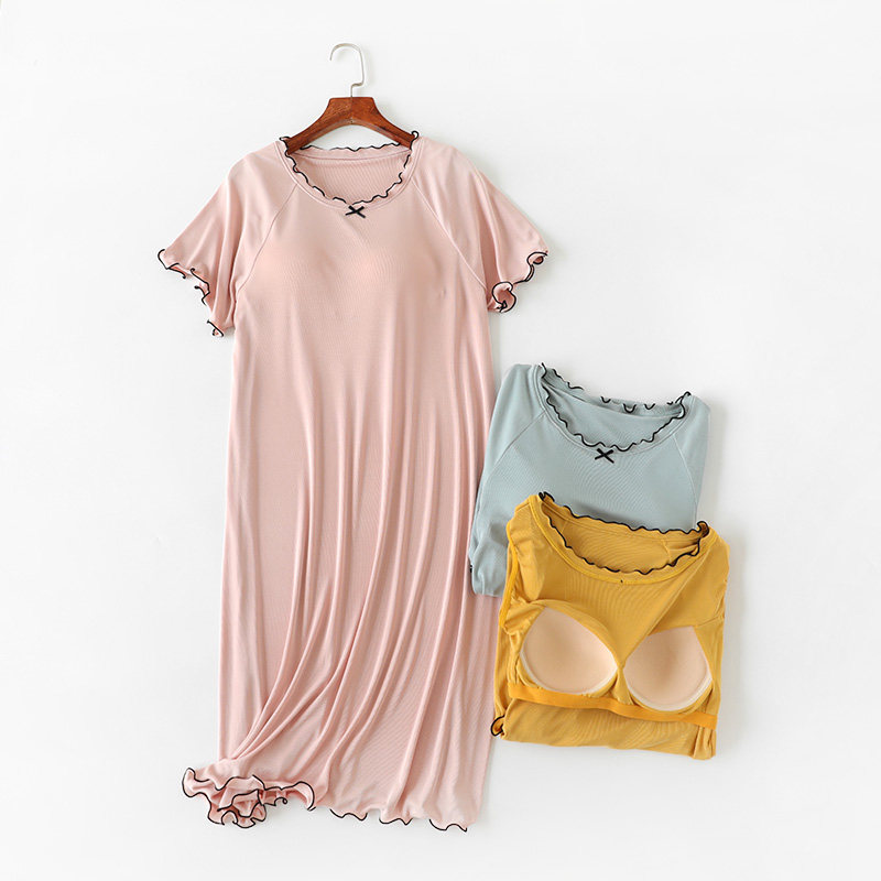 Летняя пижама, юбка, топ с чашечками, платье, короткий рукав, в корейском стиле