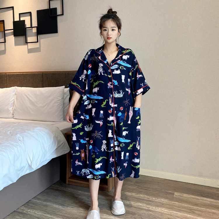 Кардиган, тонкая пижама, мультяшная юбка, платье, большой размер, короткий рукав