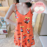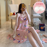 Топ с чашечками, летняя тонкая пижама, мультяшная хлопковая юбка, эффект подтяжки, оверсайз