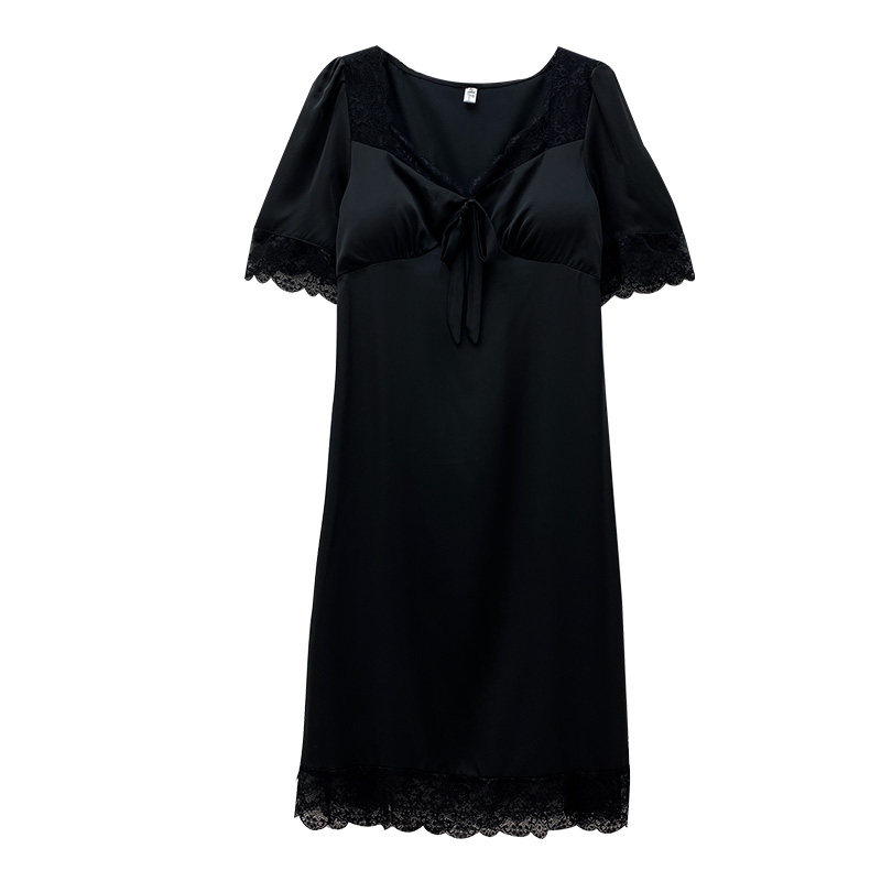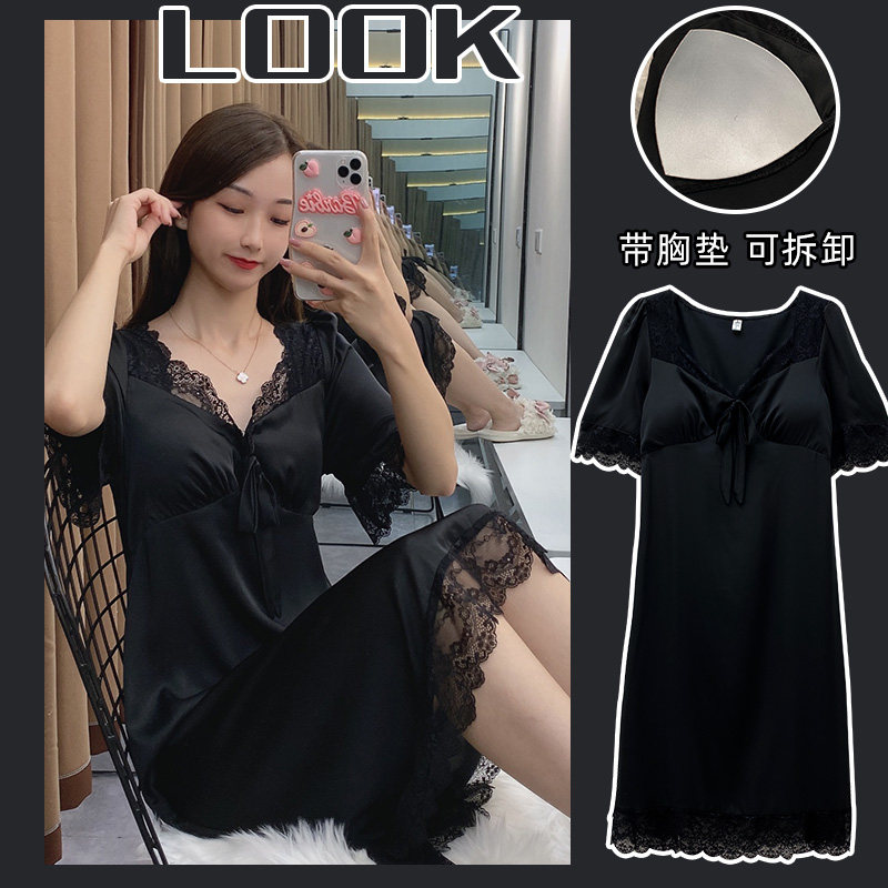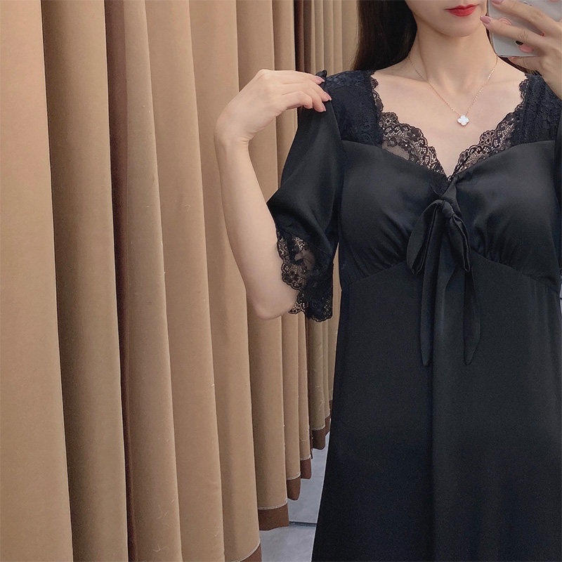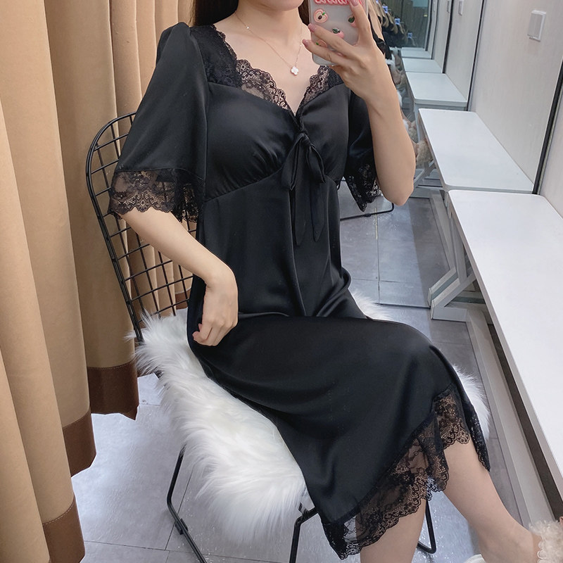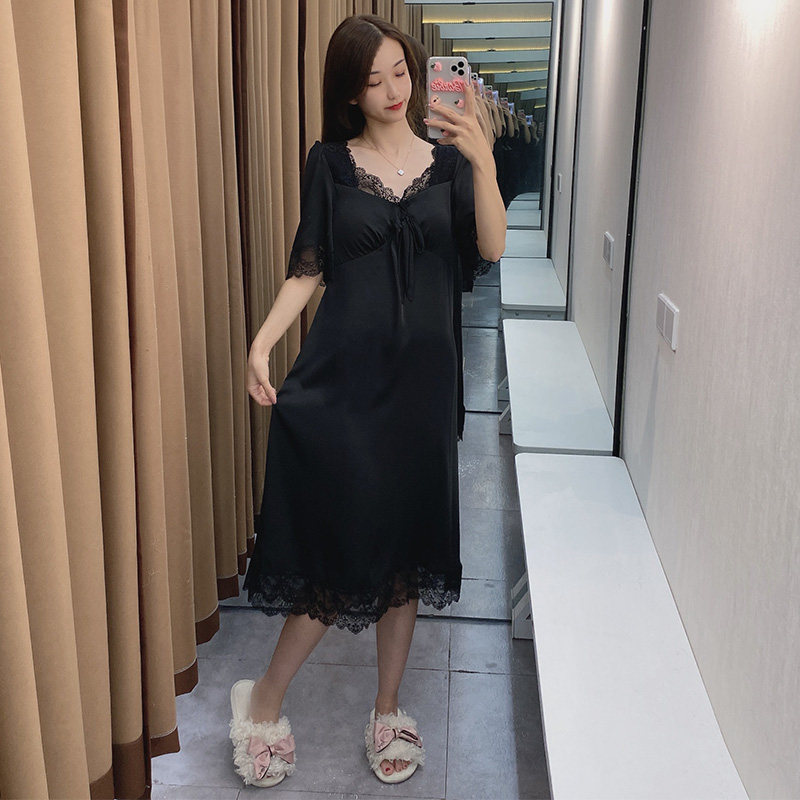 Летняя пижама, юбка, шелковый тонкий длинный черный кружевной сексуальный топ с чашечками