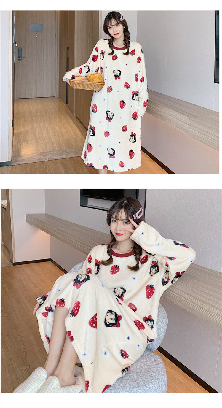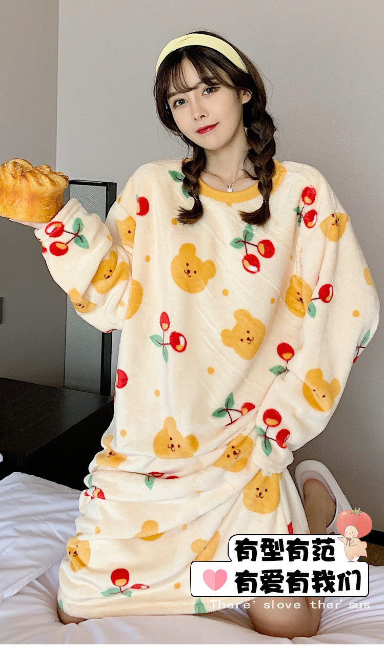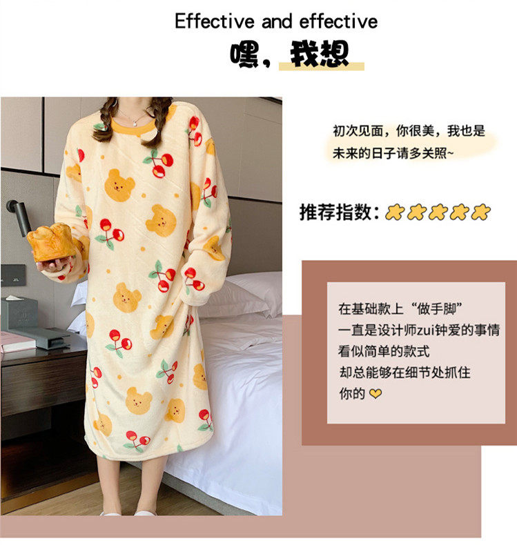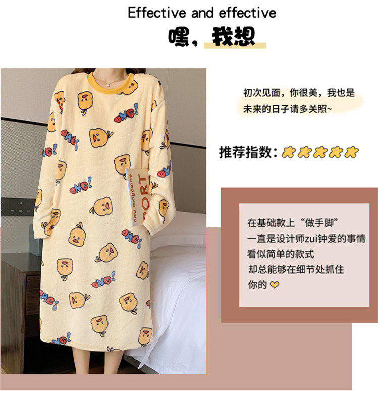 Фланелевая демисезонная пижама, юбка, удерживающее тепло зимнее мультяшное милое коралловое бархатное платье, средней длины