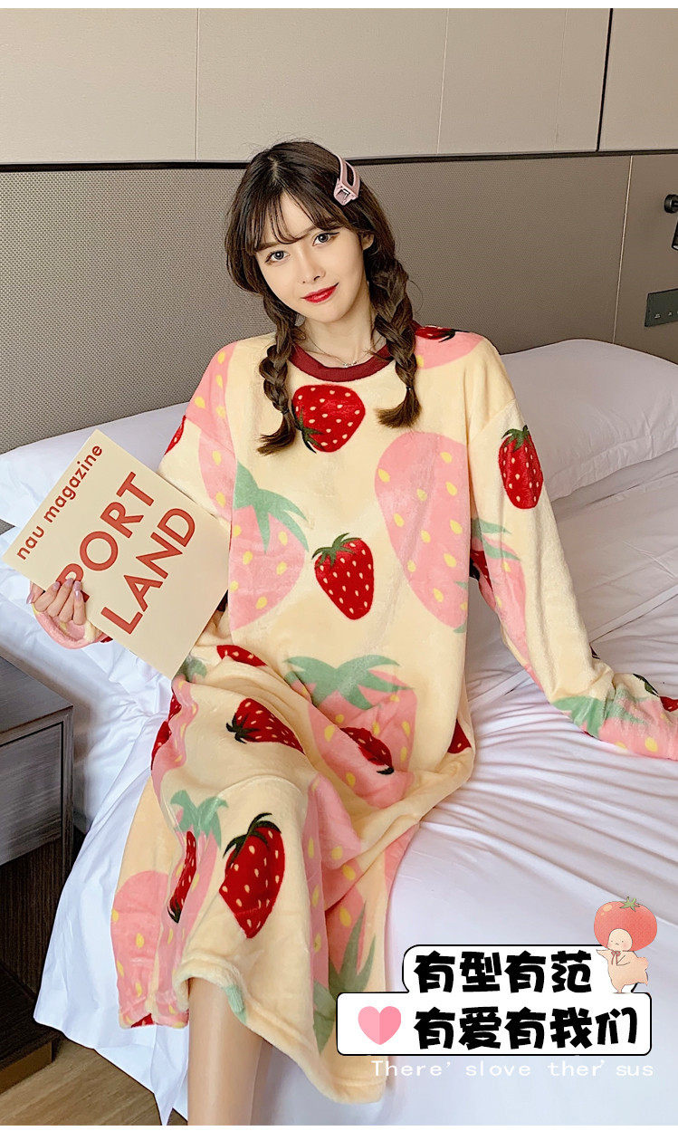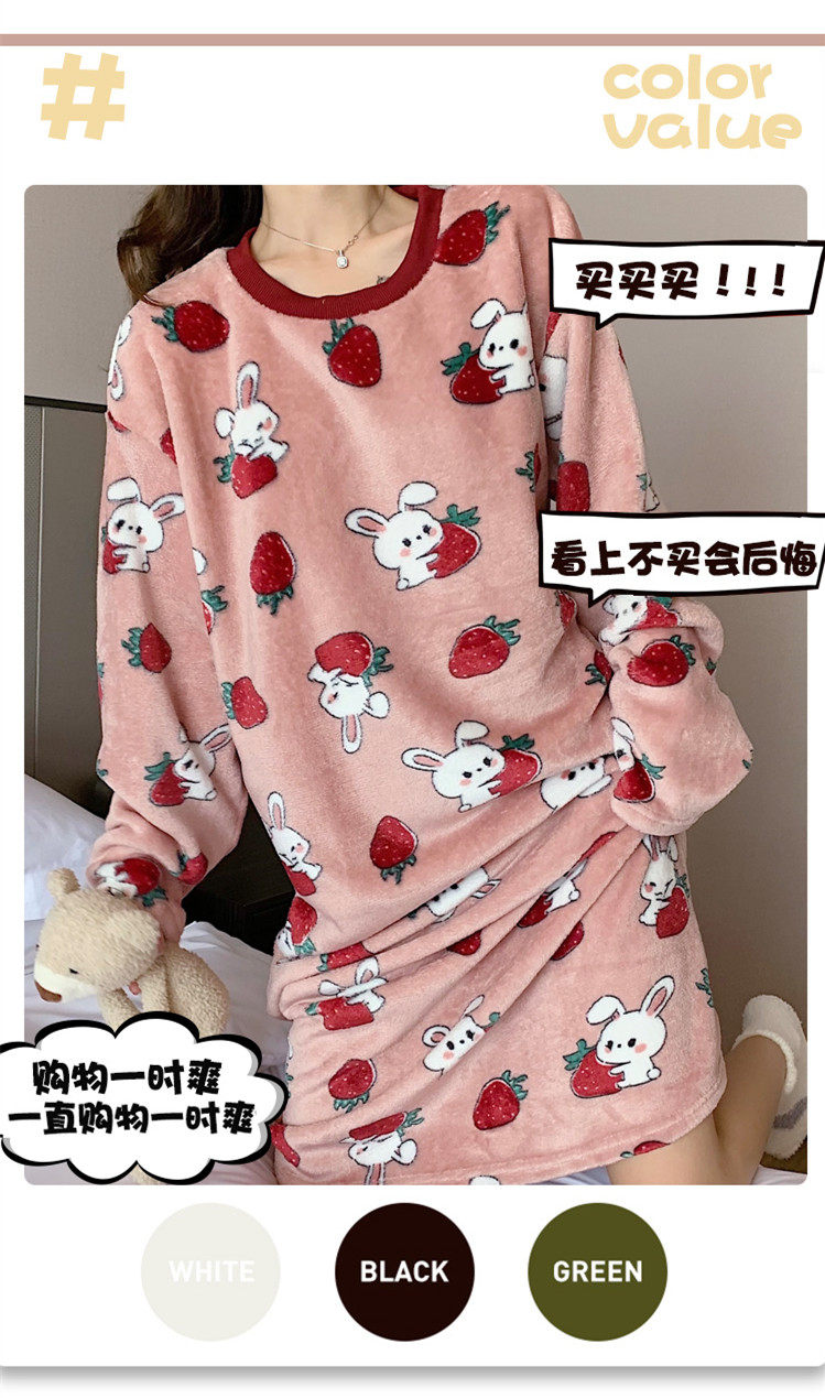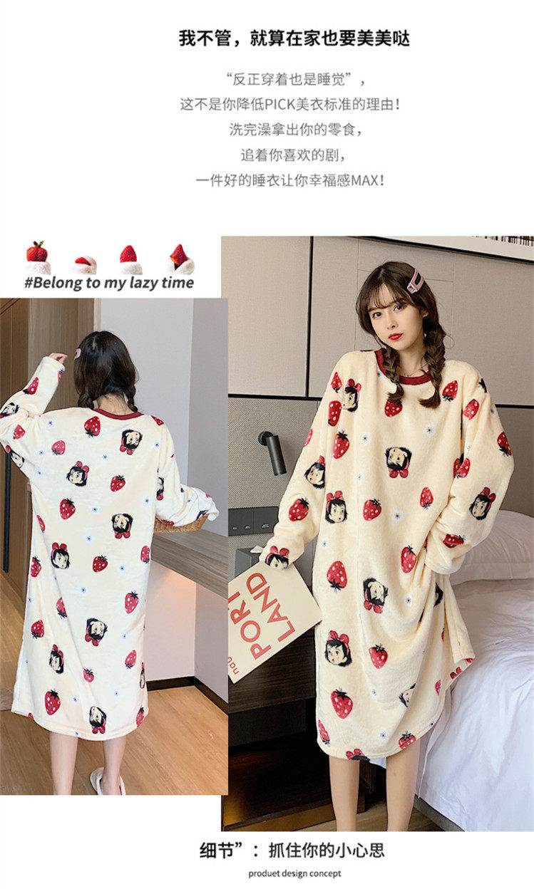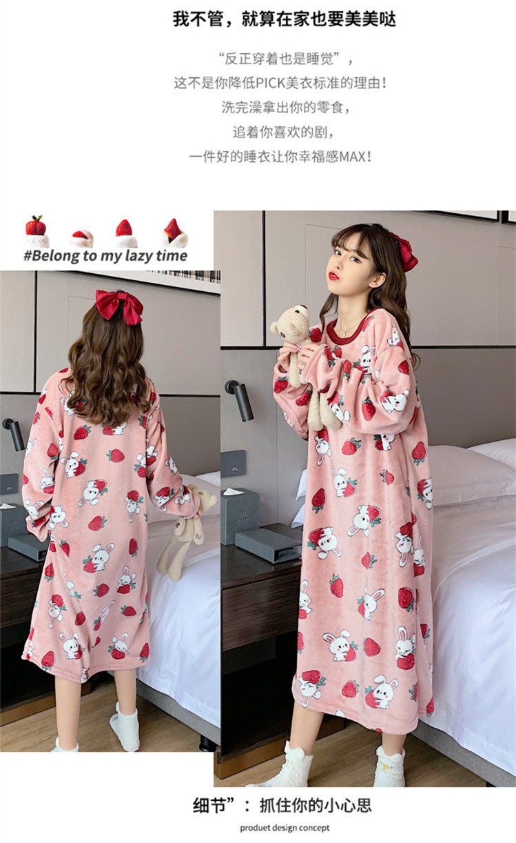 Фланелевая демисезонная пижама, юбка, удерживающее тепло зимнее мультяшное милое коралловое бархатное платье, средней длины