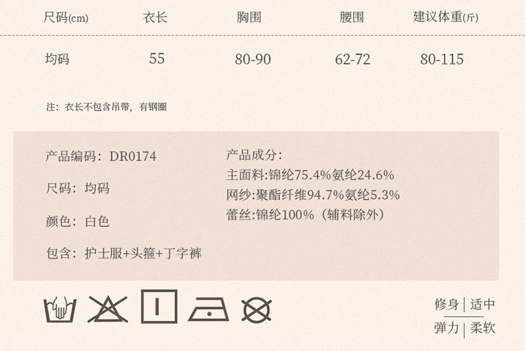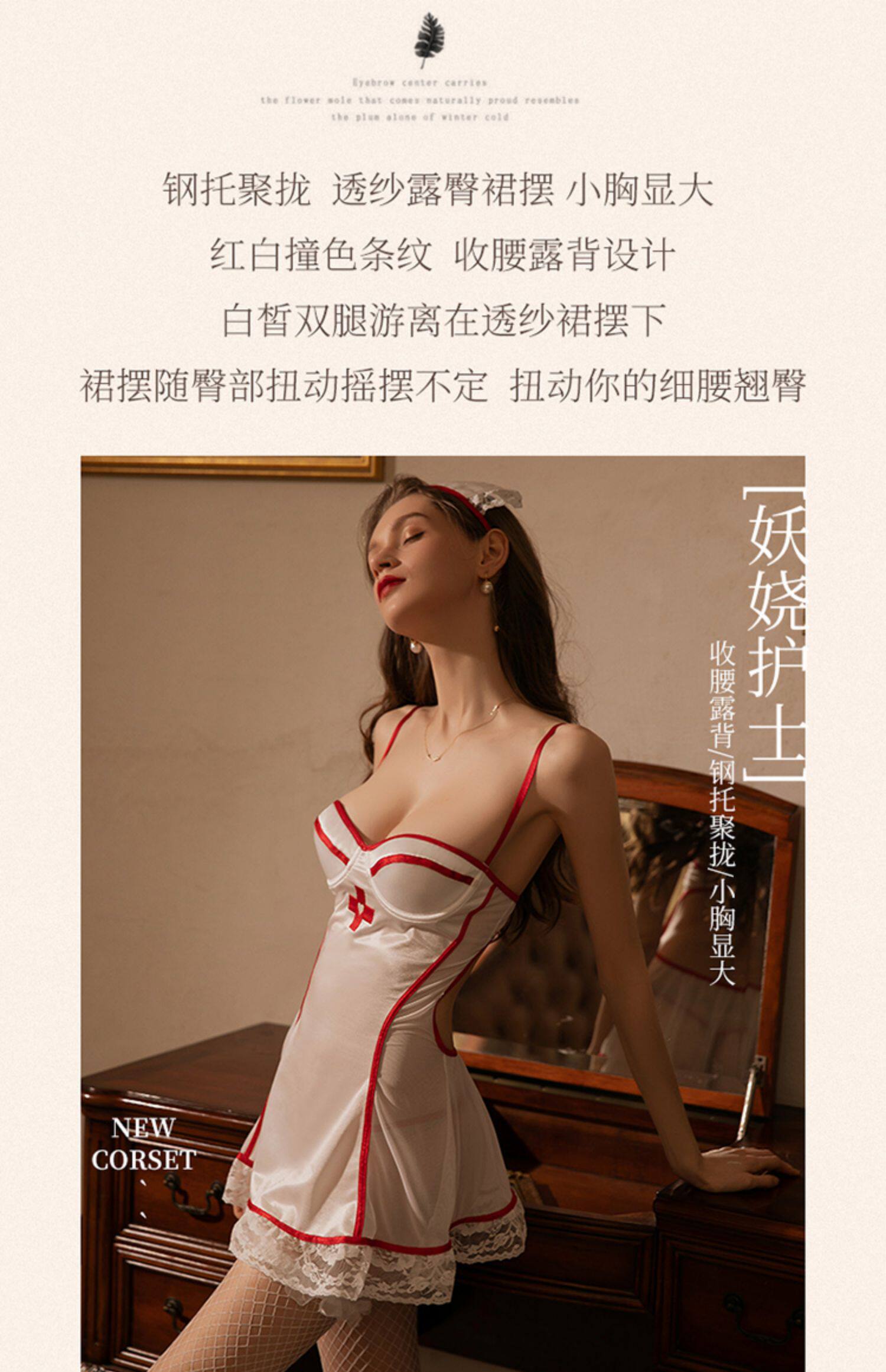 Сексуальная пижама, униформа медсестры, комплект, нижнее белье, изысканный стиль, эффект подтяжки, с открытой спиной, косплей, большой размер