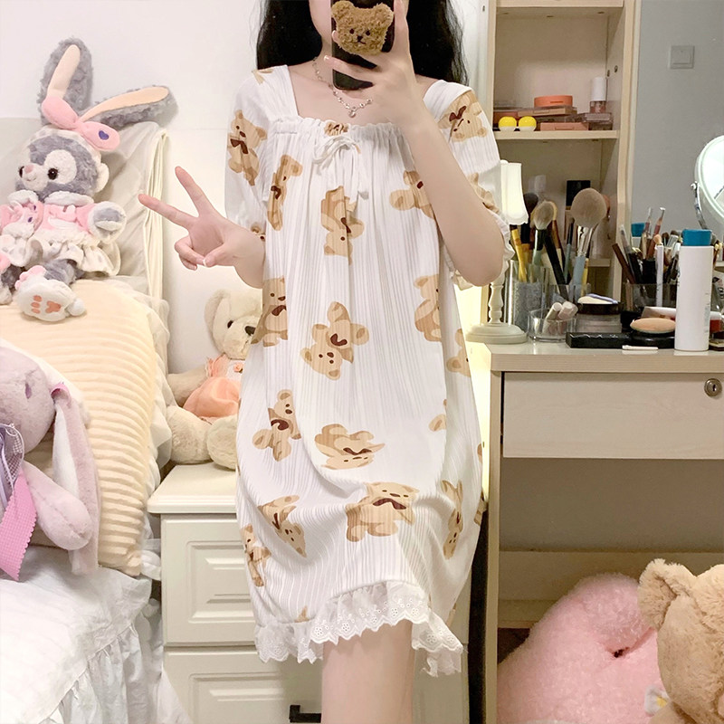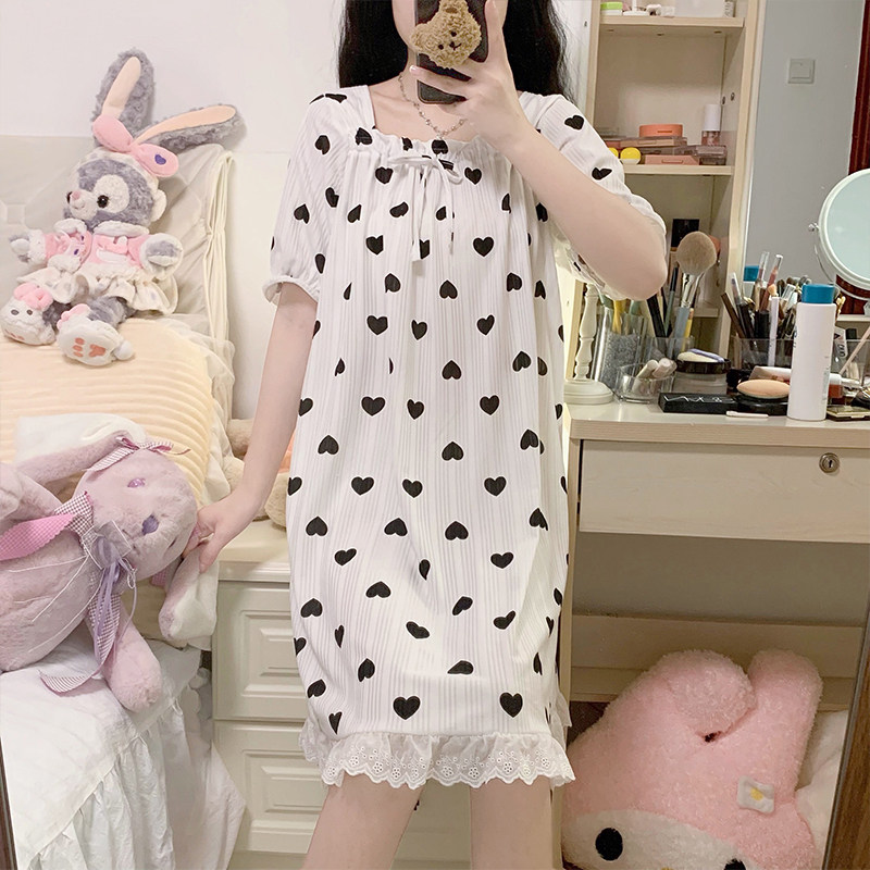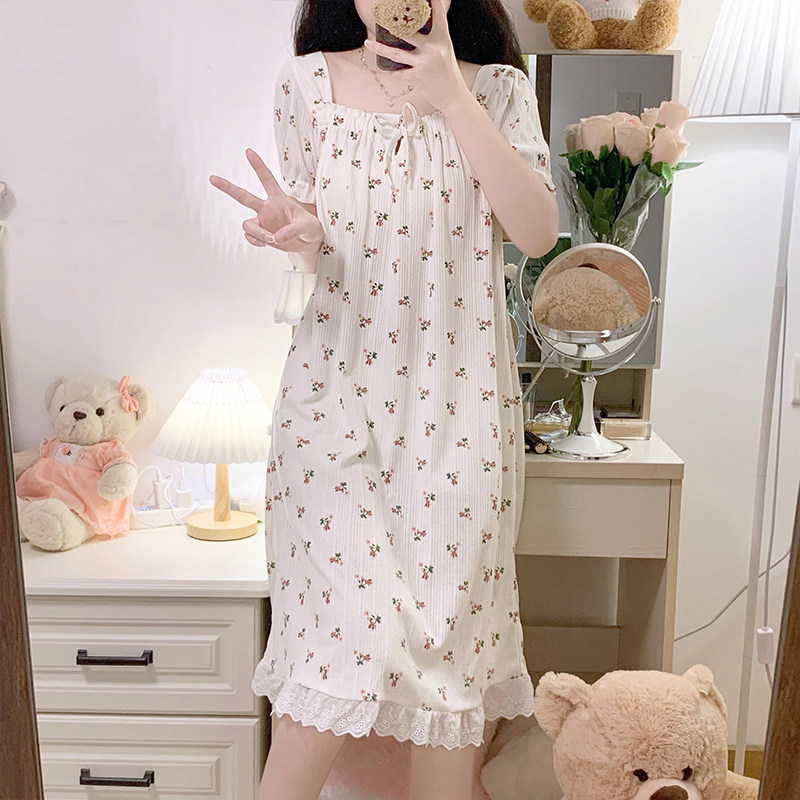 Летняя тонкая хлопковая милая пижама, короткий рукав, свободный крой, популярно в интернете, в корейском стиле, квадратный вырез