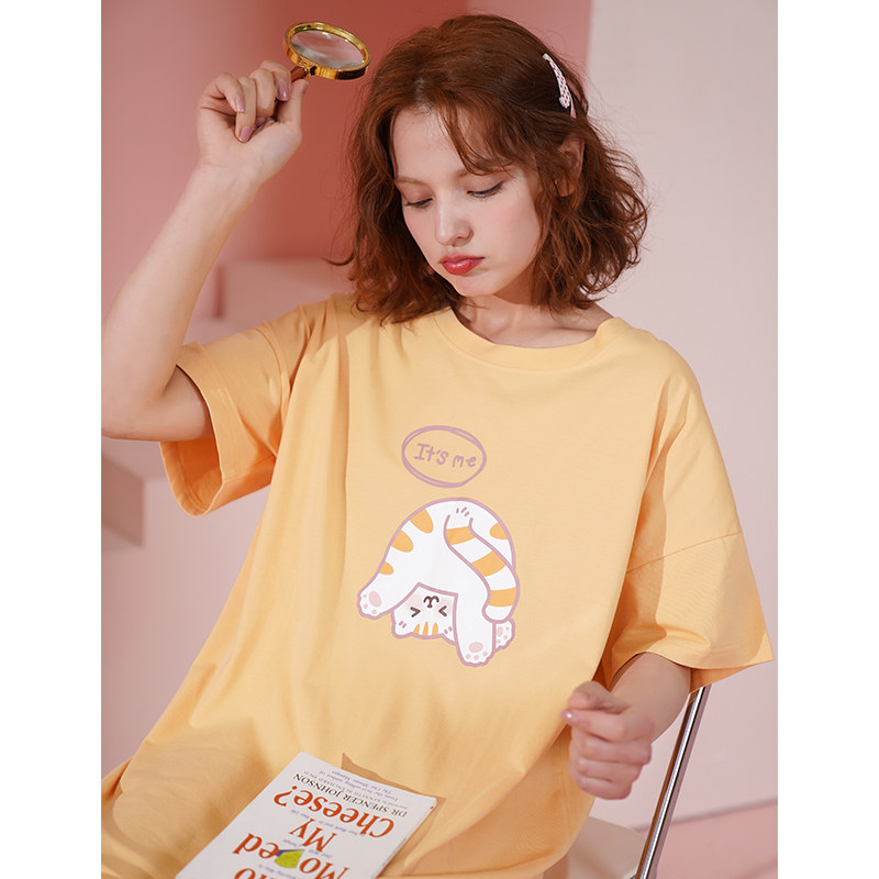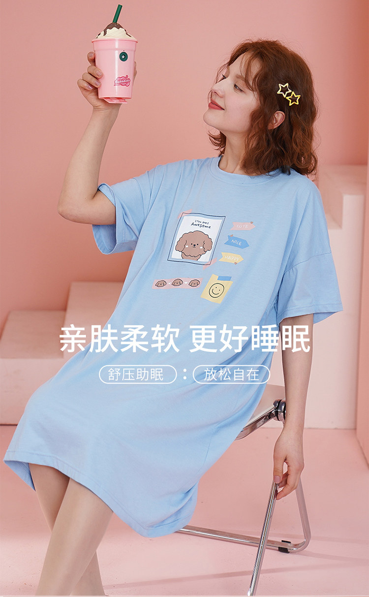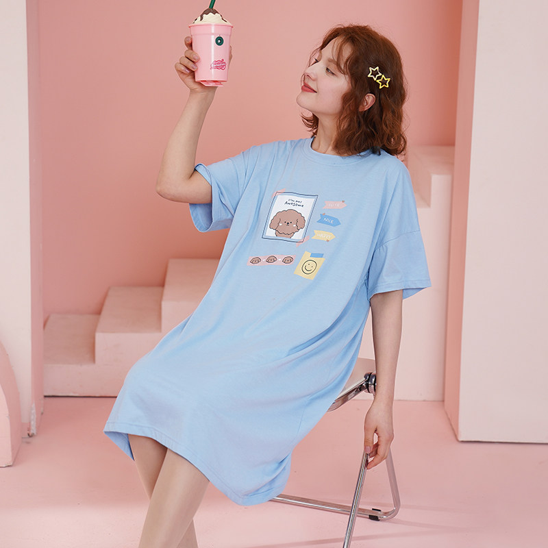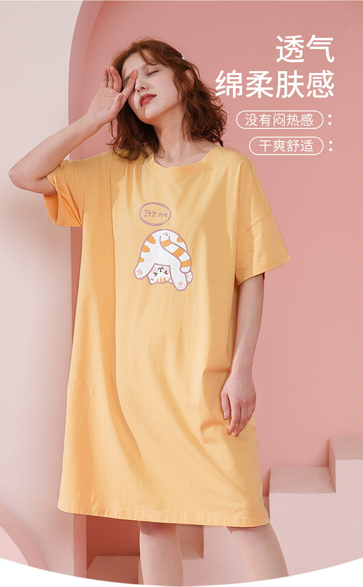 芬腾 Пижама, летняя тонкая юбка, хлопковое милое платье, короткий рукав, большой размер