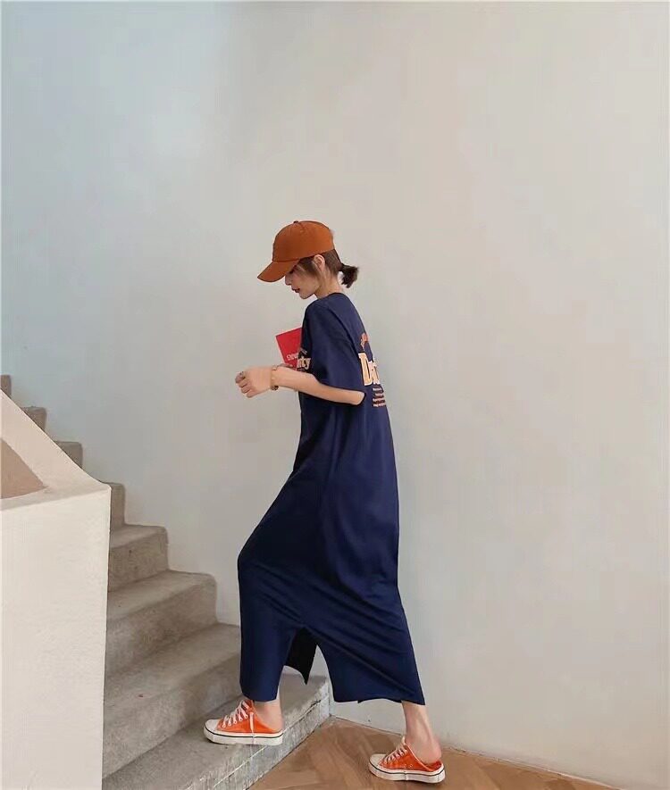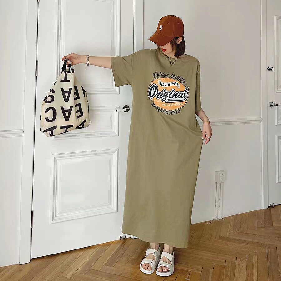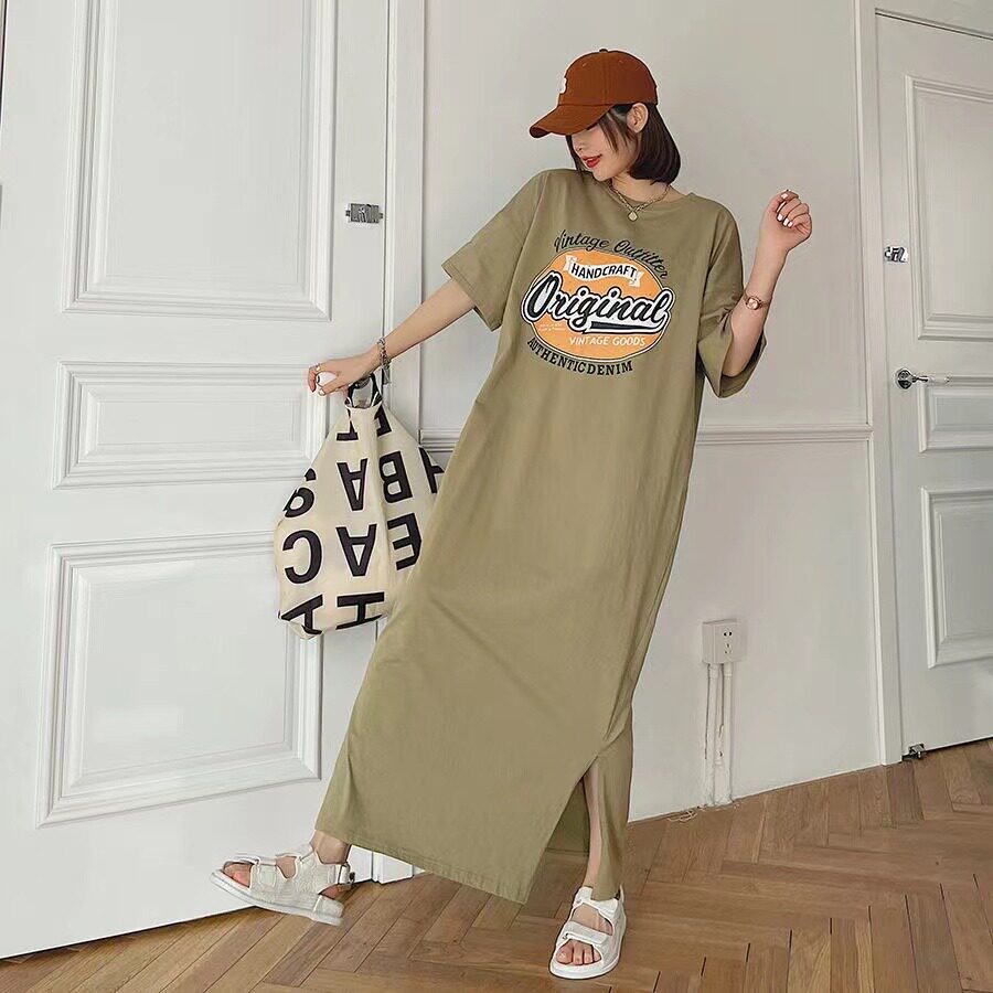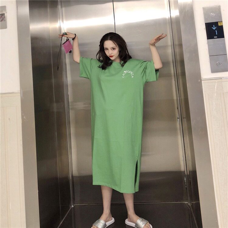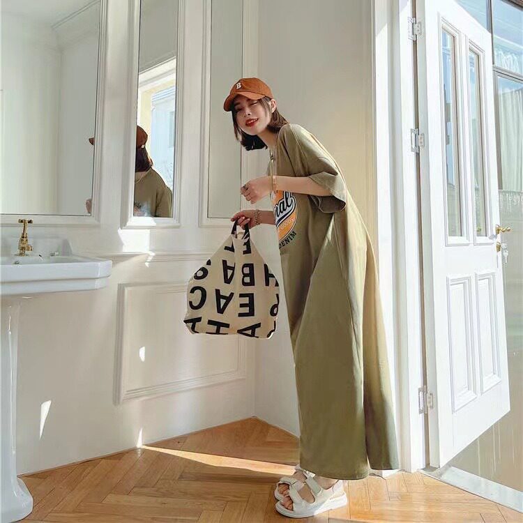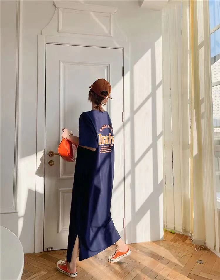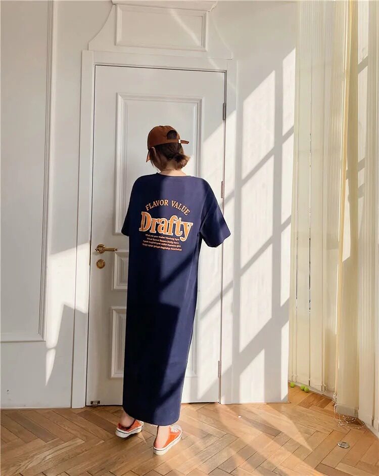 Летняя длинная юбка, пижама, длинная футболка с коротким рукавом для школьников и студентов, популярно в интернете, оверсайз