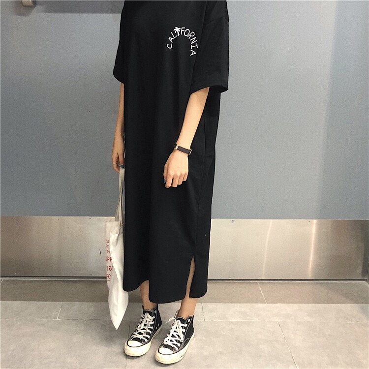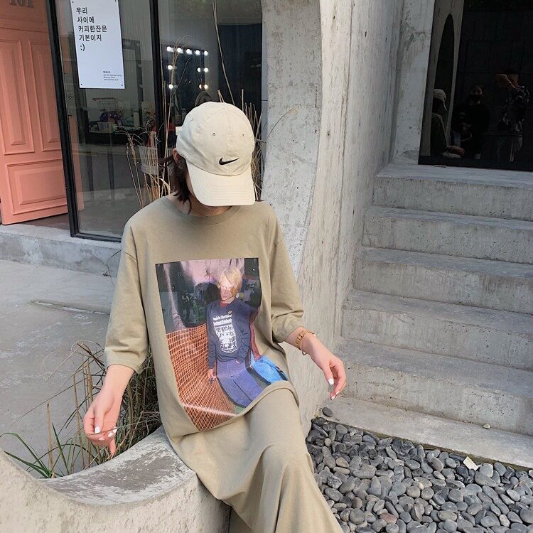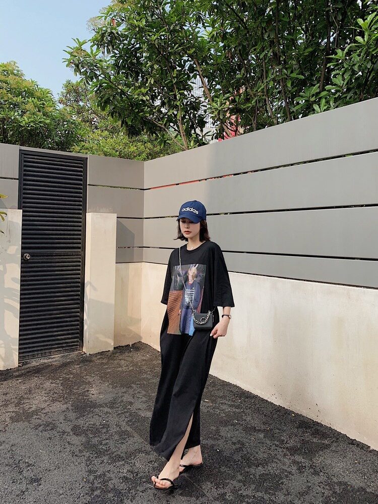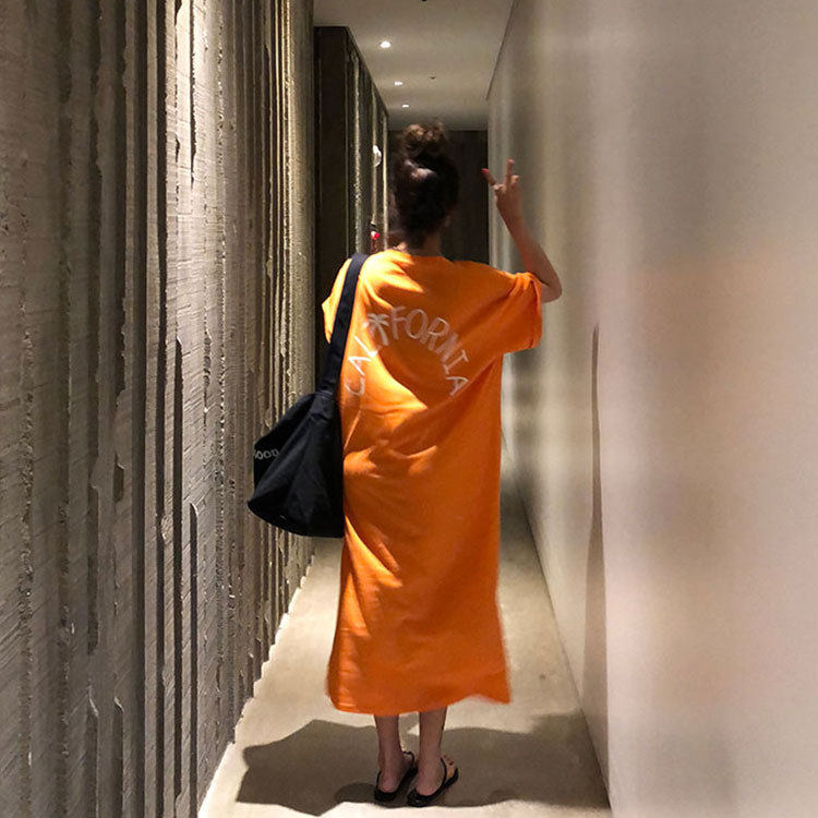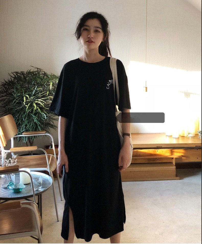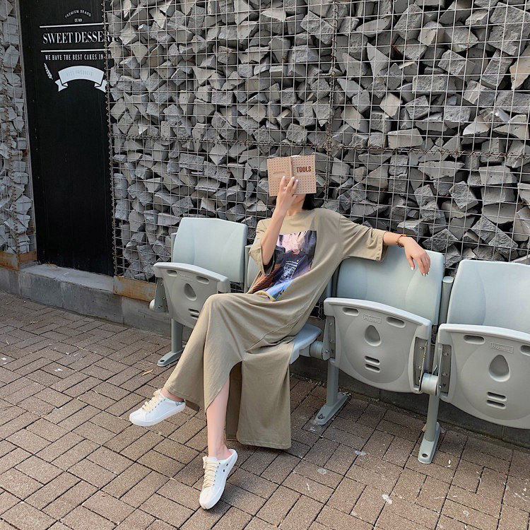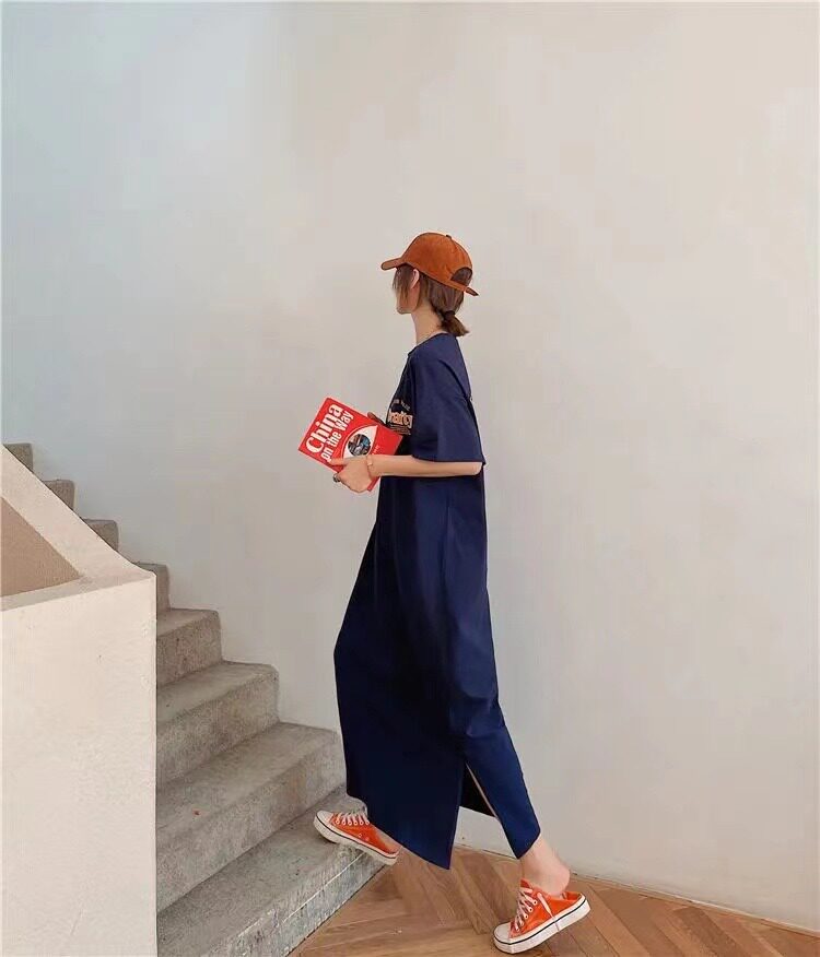 Летняя длинная юбка, пижама, длинная футболка с коротким рукавом для школьников и студентов, популярно в интернете, оверсайз
