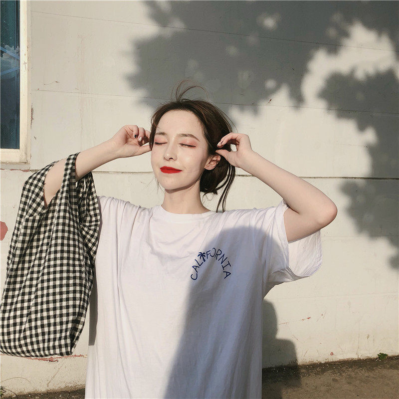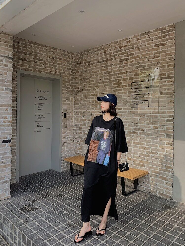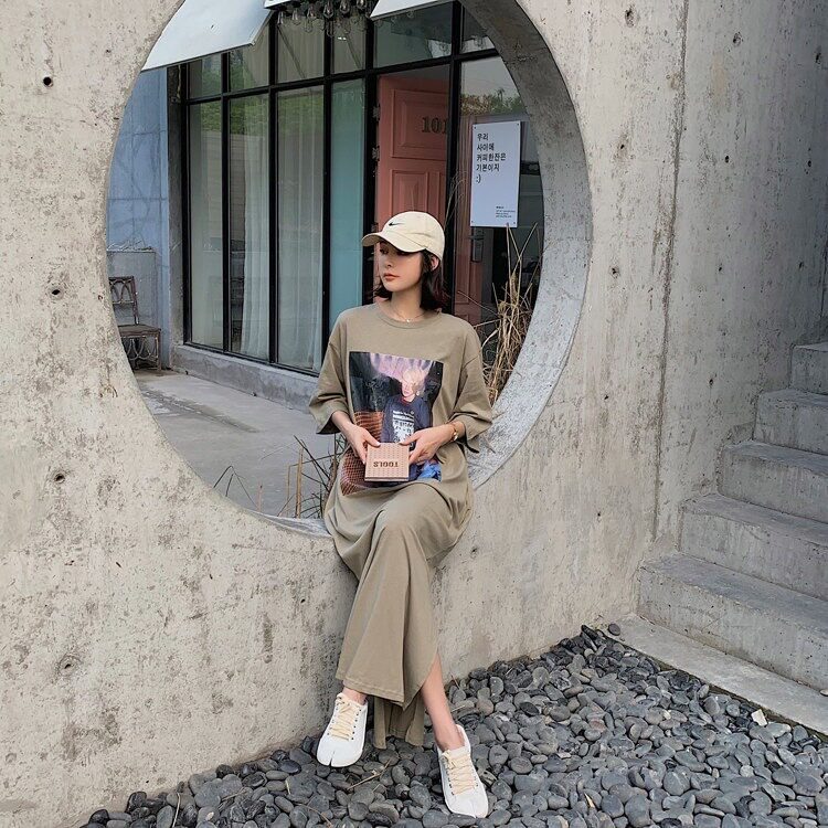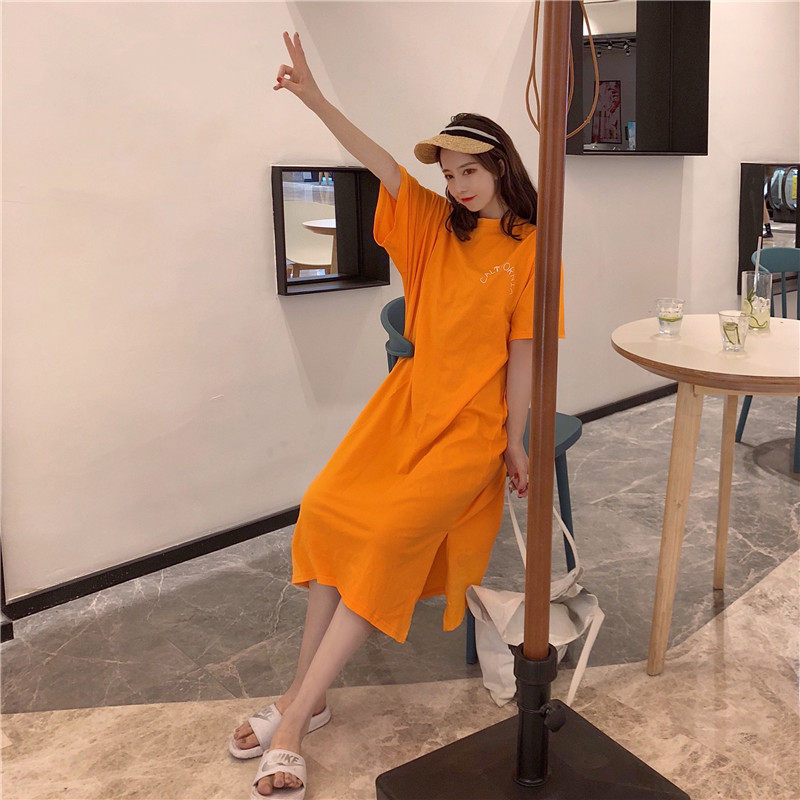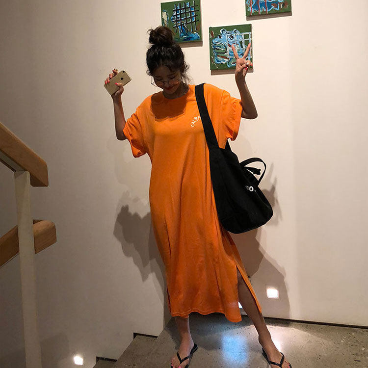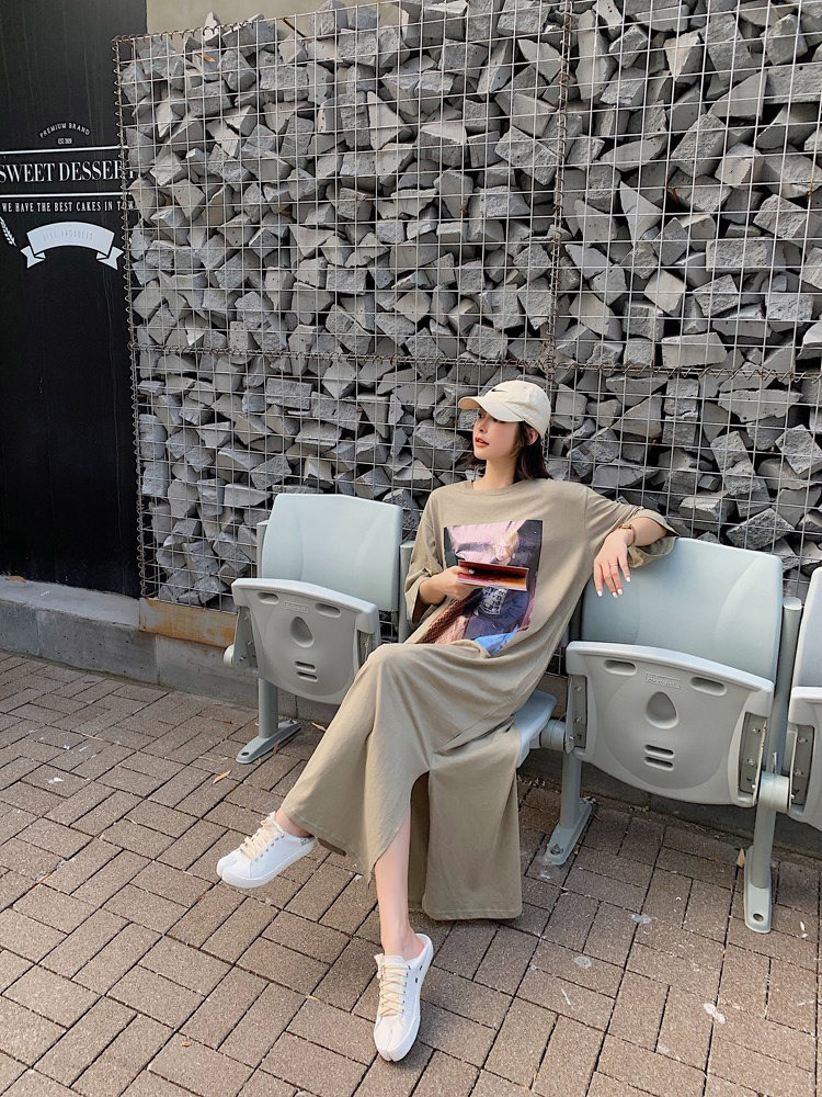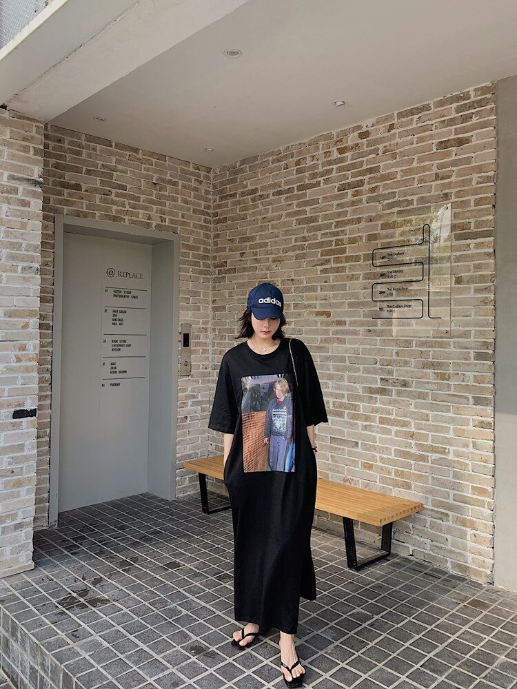 Летняя длинная юбка, пижама, длинная футболка с коротким рукавом для школьников и студентов, популярно в интернете, оверсайз