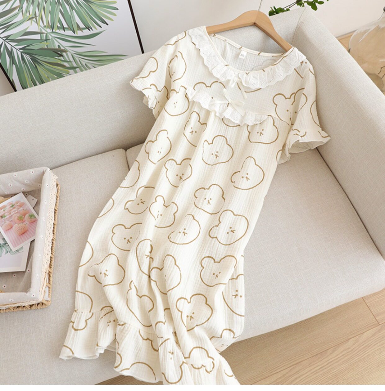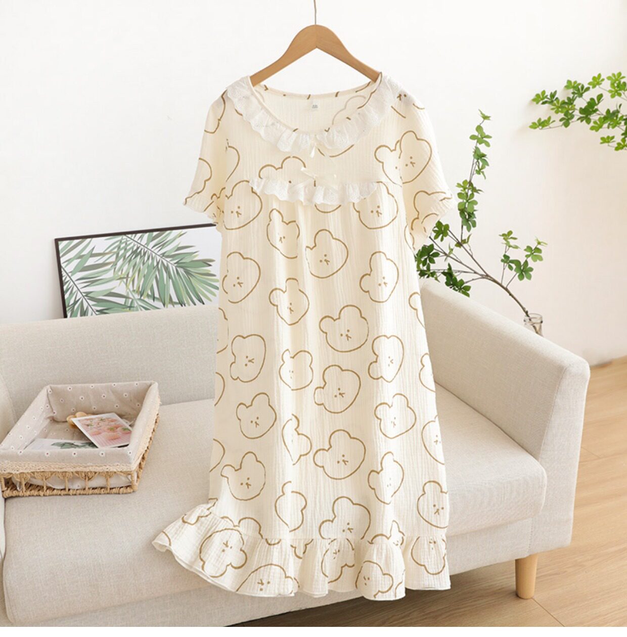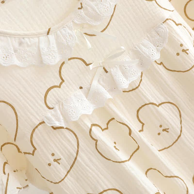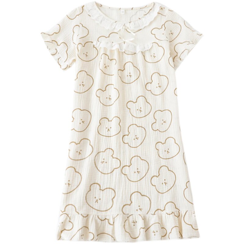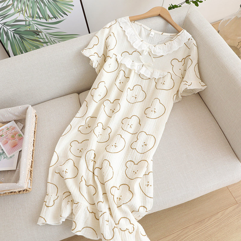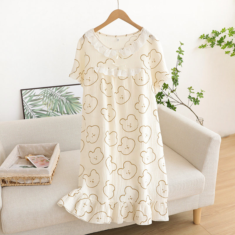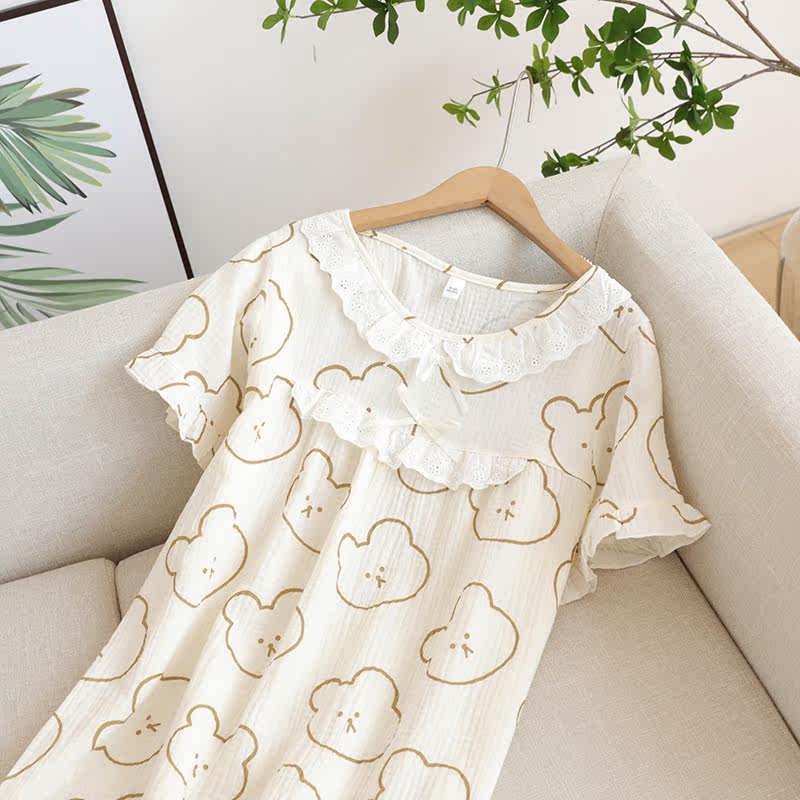 Кружевная пижама, хлопковое мультяшное платье с коротким рукавом, длинная юбка, средней длины