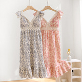 Кружевные подтяжки, топ с чашечками, пижама, милая летняя тонкая хлопковая юбка, красивая спина, эффект подтяжки