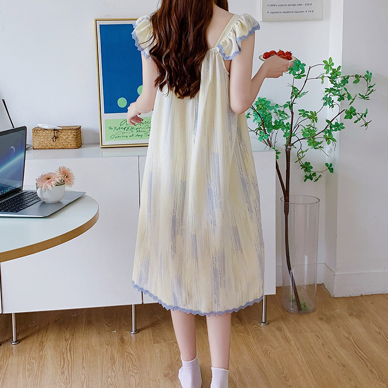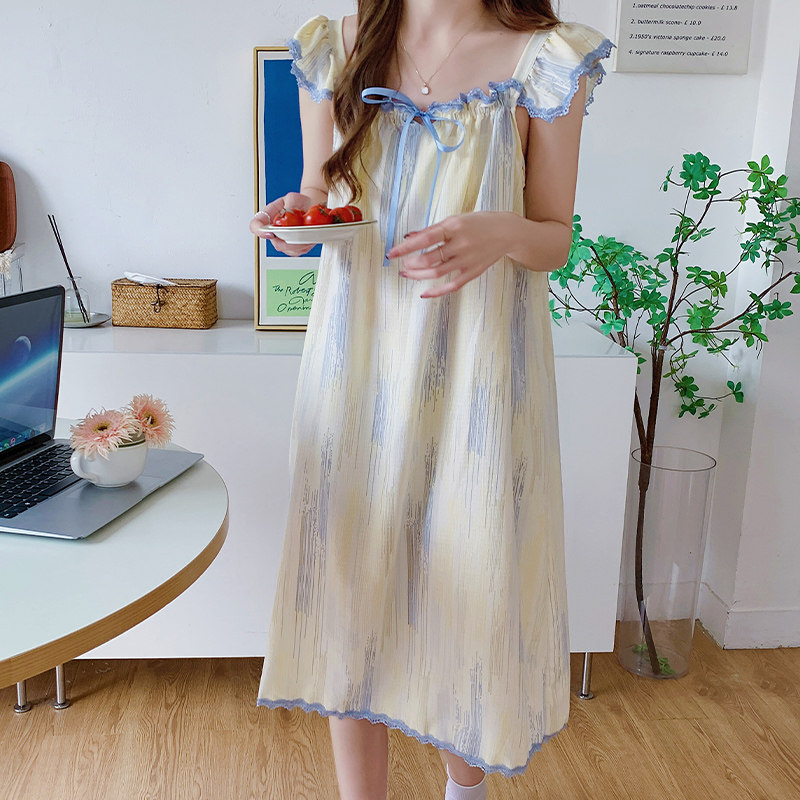 Свежая милая длинная пижама, хлопковая тонкая юбка для принцессы, средней длины, городской стиль