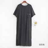 Пижама, тонкий длинный банный халат, короткий рукав, средней длины, оверсайз