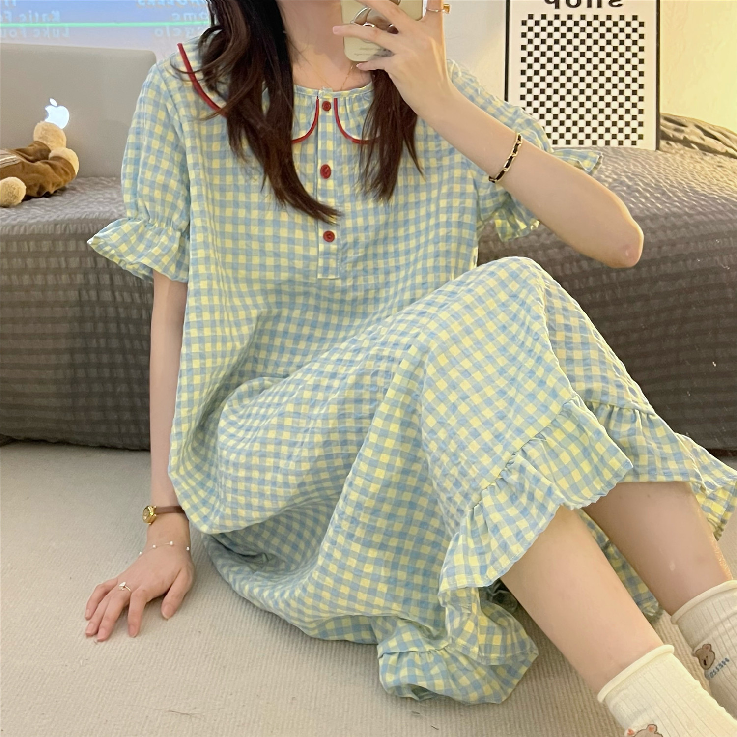 Кукла, пижама, милая летняя юбка, кукольный воротник, короткий рукав, 2024 года, новая коллекция