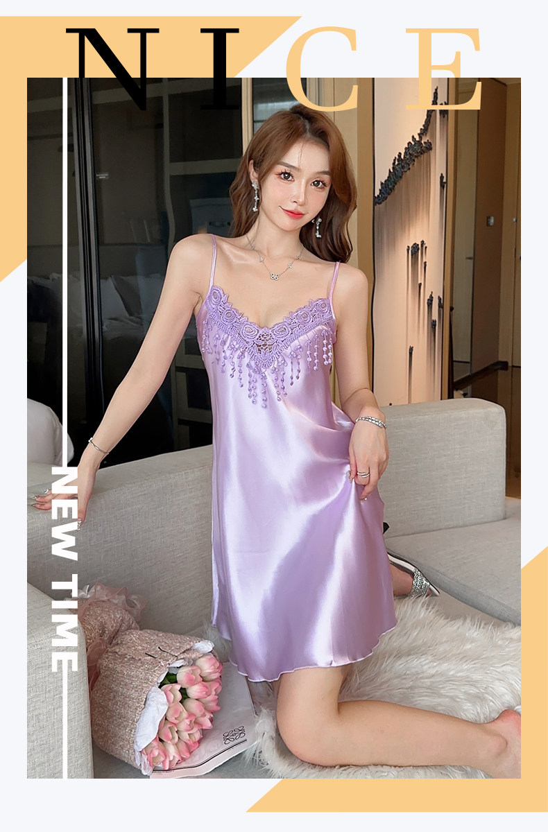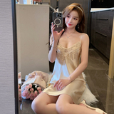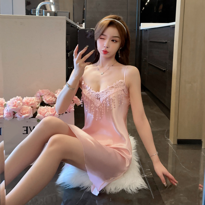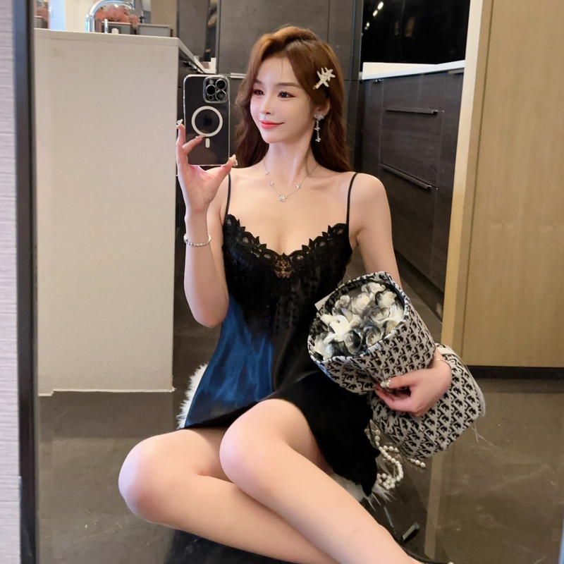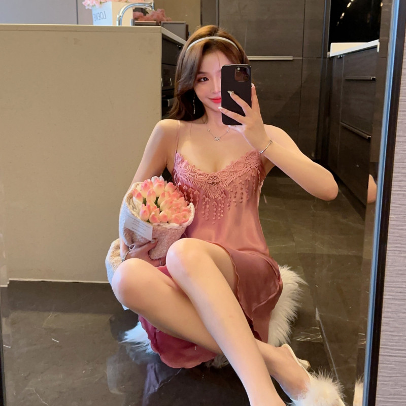 Летняя шелковая сексуальная кружевная тонкая весенняя пижама, эффект подтяжки, V-образный вырез, 2024 года