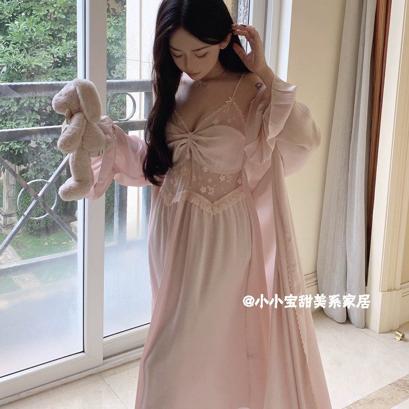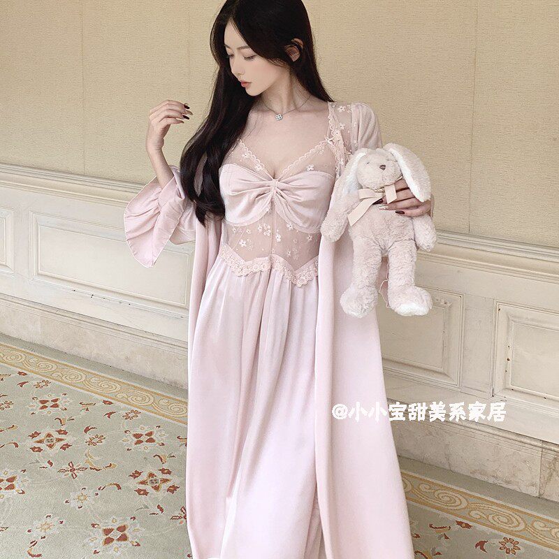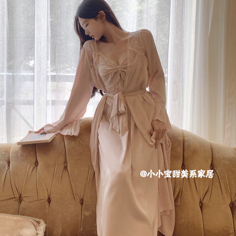 Сексуальная ретро весенняя летняя пижама, банный халат, длинный комплект, французский стиль, эффект подтяжки, средней длины